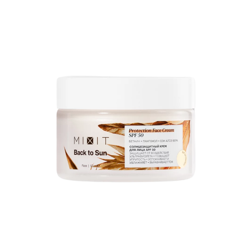 Крем для лица MIXIT "BACK TO SUN" солнцезащитный SPF 50, с пантенолом и алоэ вера, 50 мл