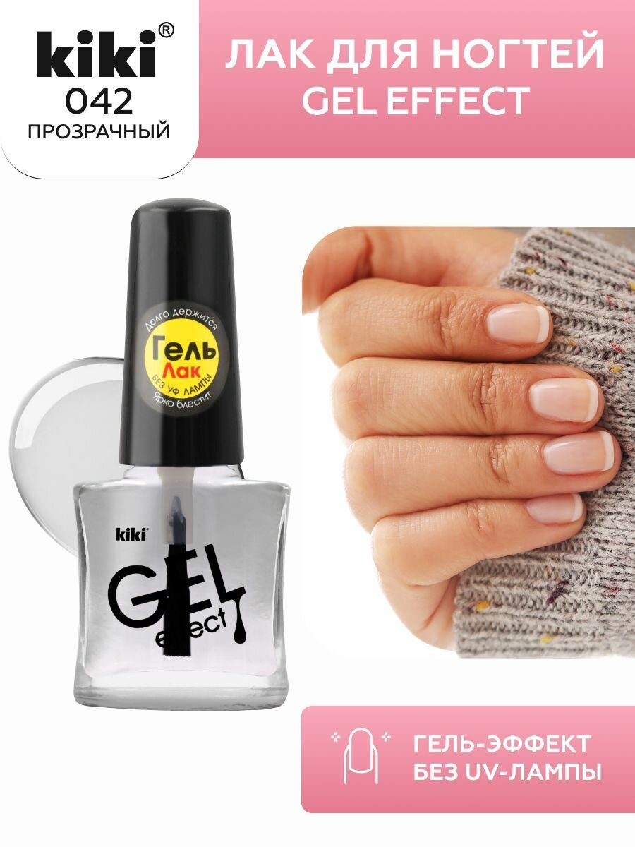 Купить Лак для ногтей kiki Gel Effect тон 42 прозрачный, с гелевым эффектом без уф-лампы, цветной глянцевый маникюр и педикюр, кики, 6 мл