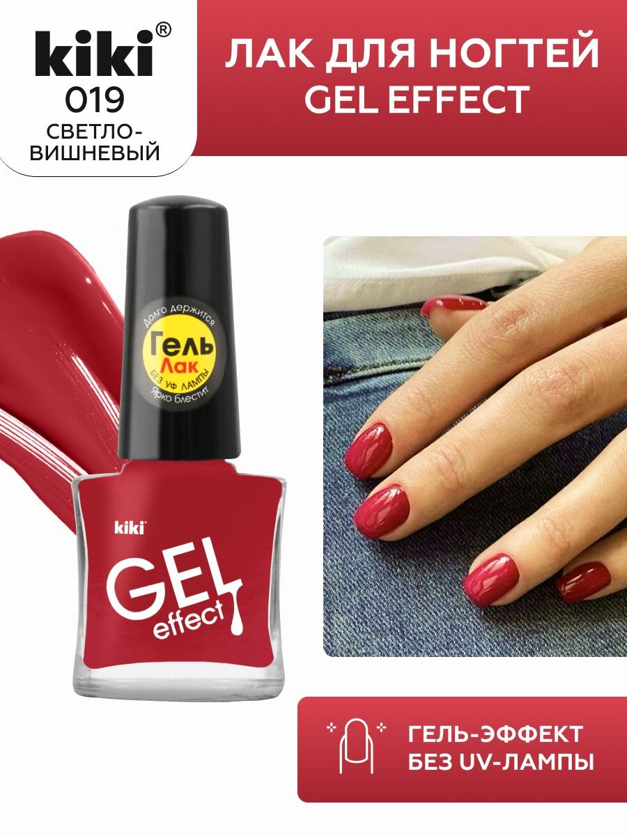 Купить Лак для ногтей kiki Gel Effect тон 19 вишневый с гелевым эффектом без уф-лампы, глянцевый маникюр и педикюр, 6 мл