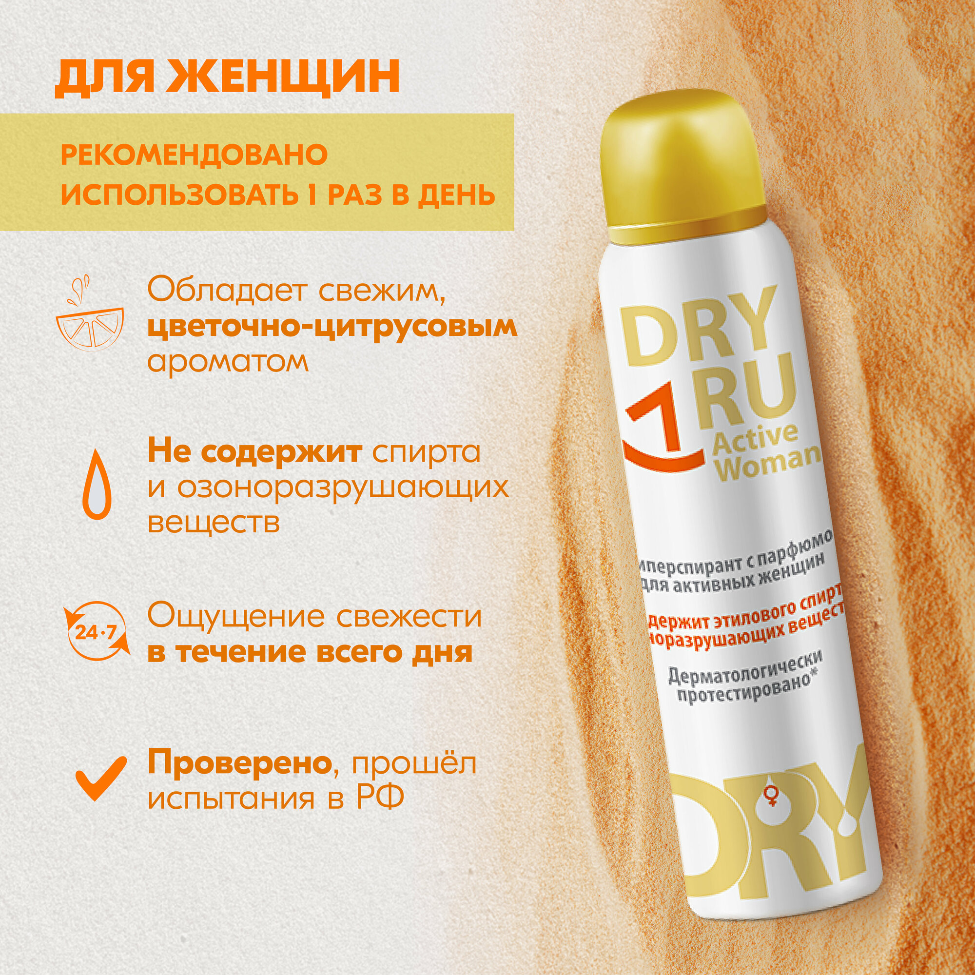 Драй РУ DRYRU ACTIVE WOMAN антиперспирант с парфюмом для активных женщин 150мл
