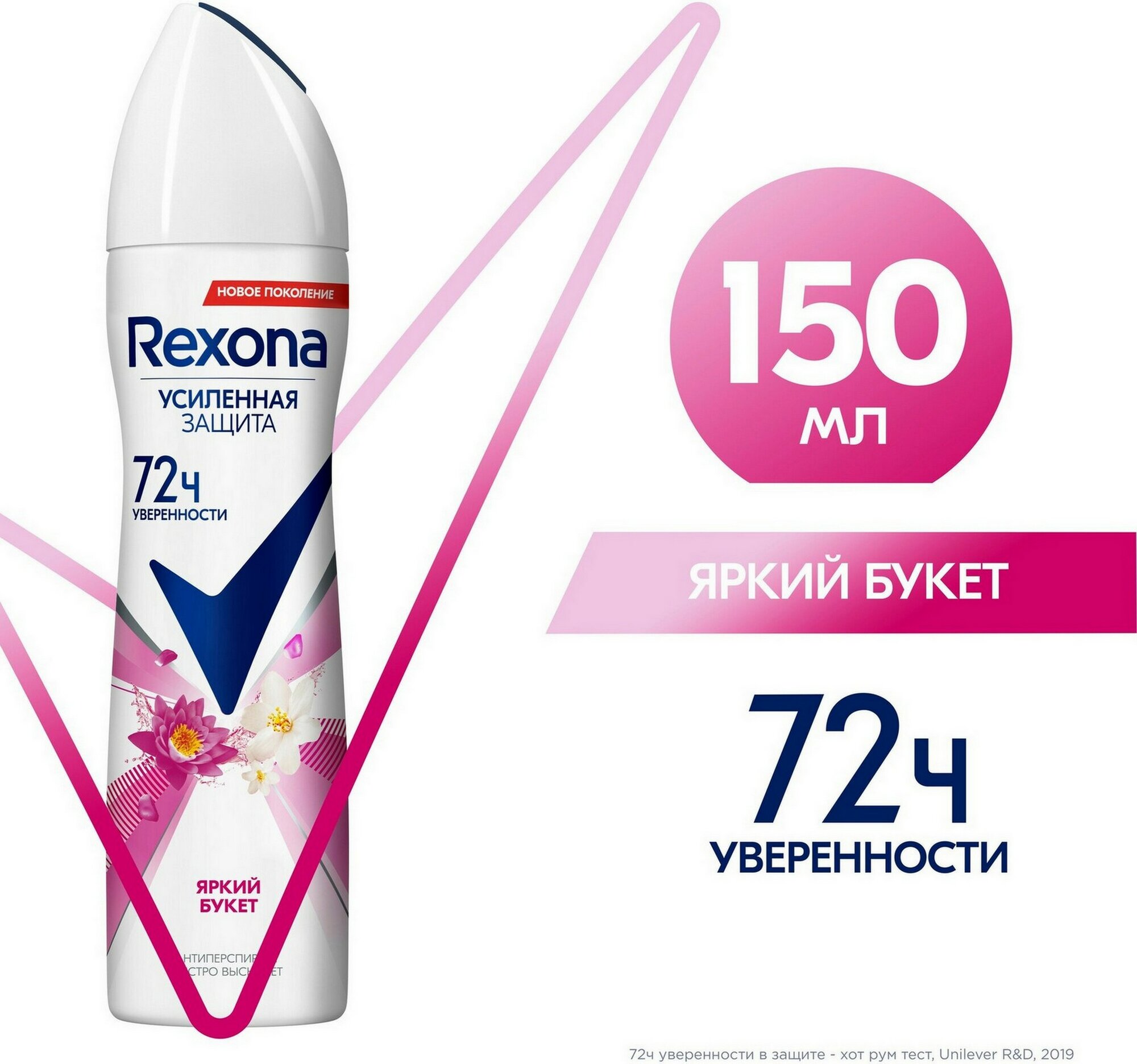 Rexona Дезодорант-антиперспирант аэрозоль Яркий букет усиленная защита 72 часа уверенности 150 мл - 2 шт