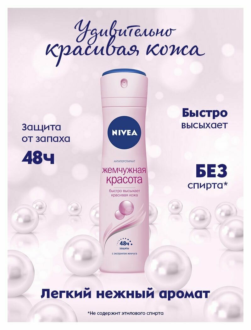 Дезодорант-антиперспирант спрей NIVEA "Жемчужная красота" с экстрактом жемчуга, 150 мл