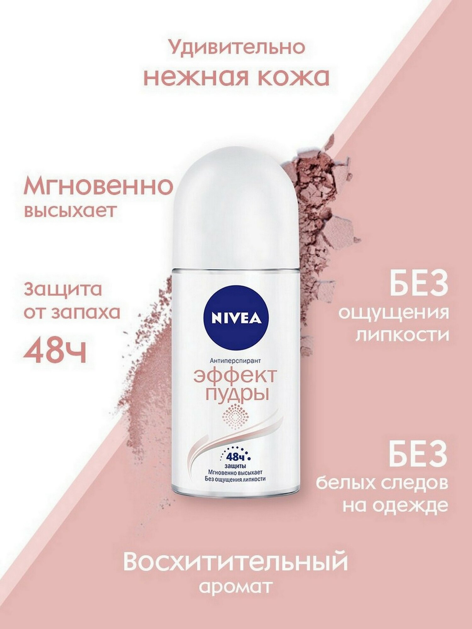Купить Nivea Дезодорант-антиперспирант ролик женский Эффект пудры, 50 мл - 1 шт