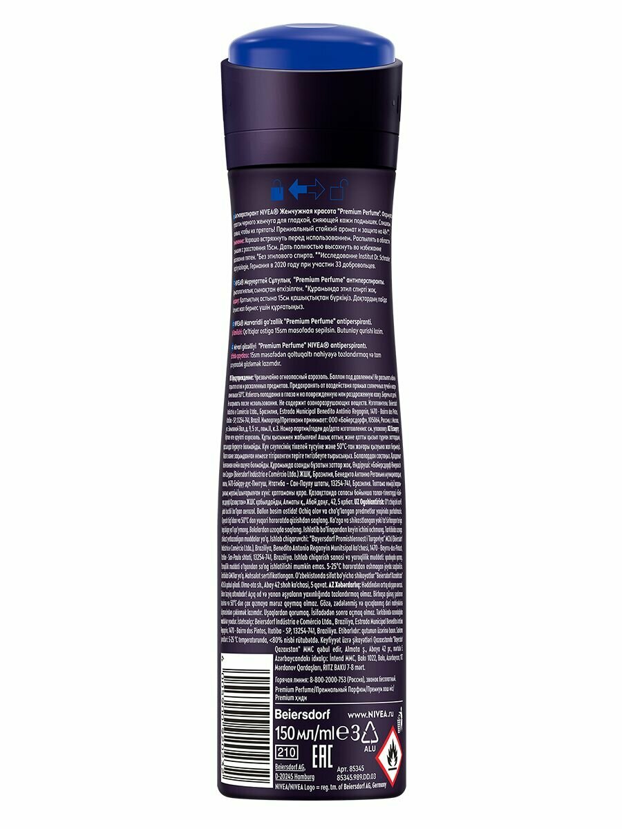NIVEA Антиперспирант Жемчужная красота Premium Perfume, спрей, аэрозоль, 150 мл, 150 г, 1 шт.