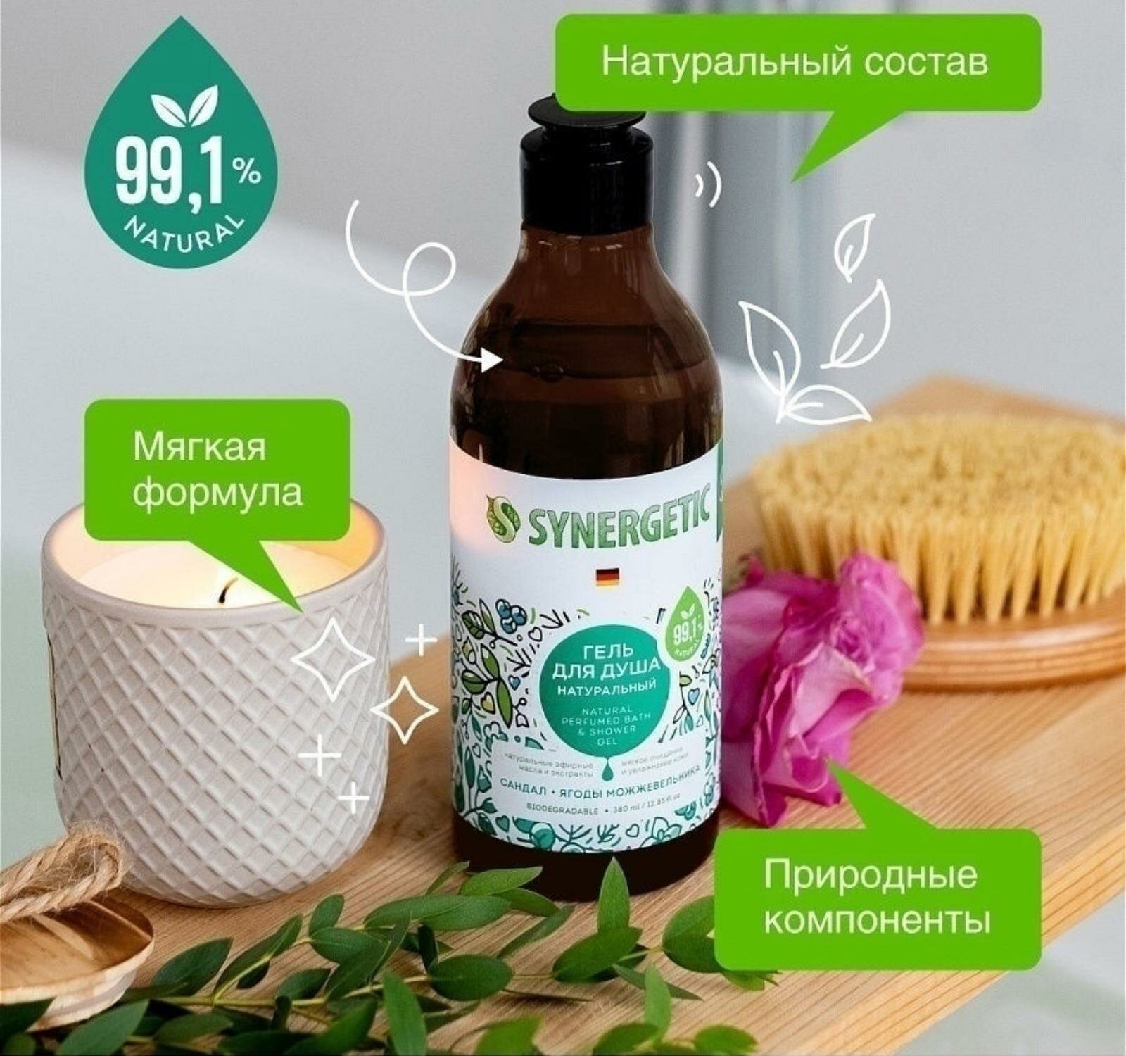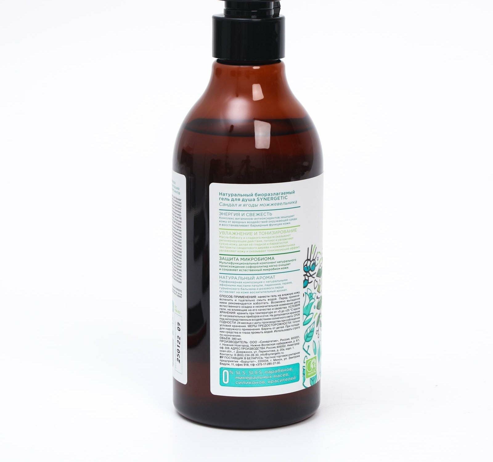 Гель для душа SYNERGETIC, биоразлагаемый, со вкусом сандала и ягод можжевельника, 380 мл (комплект из 6 шт)