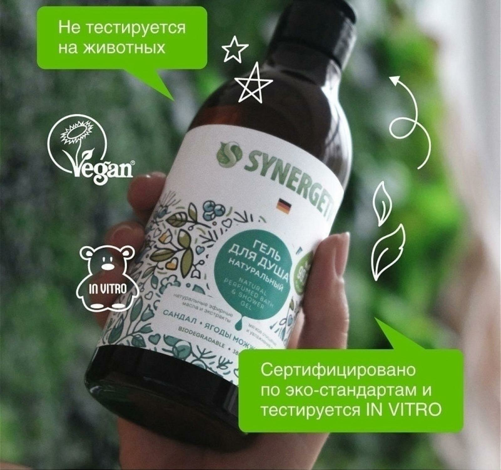 Гель для душа биоразлагаемый SYNERGETIC сандал и ягоды можжевельника, 380 мл (комплект из 5 шт)