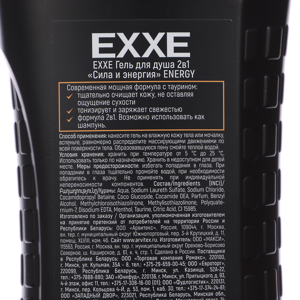 EXXE MEN Гель для душа 2в1 "Сила и энергия" ENERGY, 400 мл
