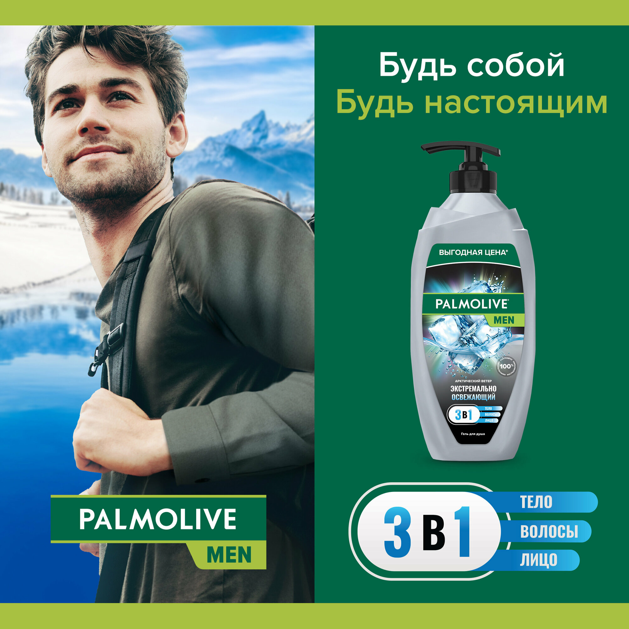 Палмолив / Palmolive For Men - Шампунь и гель для душа Арктический ветер 3в1, 250 мл