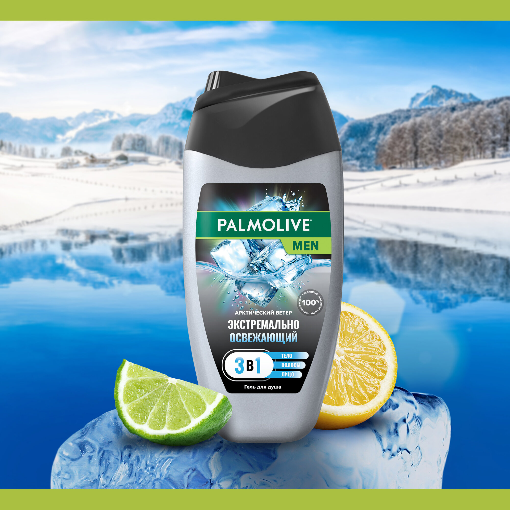 Гель для душа 3 в 1 для лица, волос и тела 250 мл, PALMOLIVE MEN "Арктический ветер", освежающий, 5996175230951, 1шт в компл.