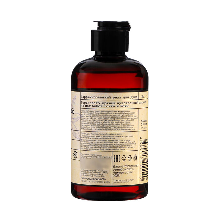 Гель для душа парфюмированный VEGAN.Love.Studio № 09 Tonka Beans, Leather, 300 мл. Бобы тонка, кожа