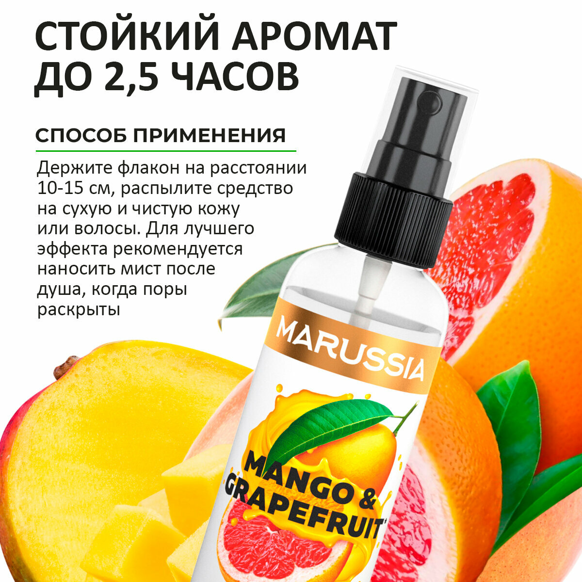 Купить Marussia Спрей мист для тела и волос парфюмированный, душистая вода Манго и Грейпфрут, 100 мл