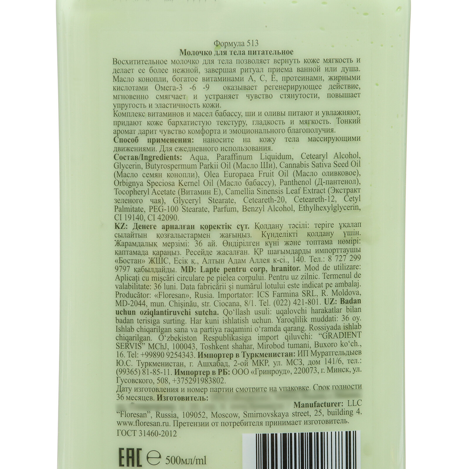 Купить Молочко для тела питательное Floresan для чувствительной кожи с маслом семян конопли, 500 мл 1022933