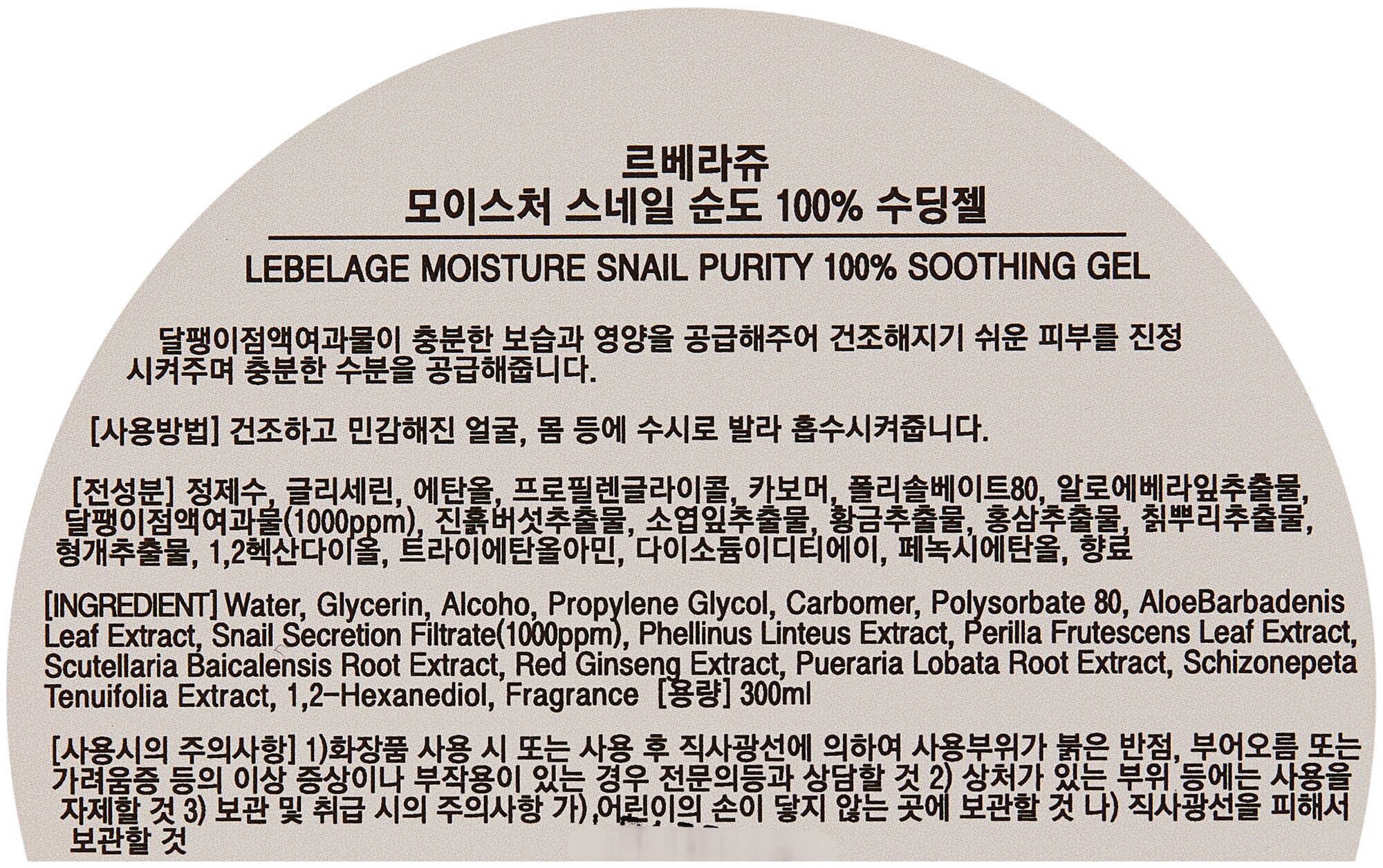 | Состав | water, glycerin, alcohol, propylene glycol, carbomer, polysorbate 80, aloe Barbadensisis Leaf extract, Snail secretion filtrate(1000 ppm), Phellinus Linteus extract, Perilla Frutescens Leaf extractct, Scutellaria Baicalensis Root extract, Red Ginseng extract, Pueraria Lobata Root extract, Schizonepetata Tenuifolia extract, 1,2-hexanediol, triethanolamine, disodium EDTA, phenoxyethanol, fragrance |