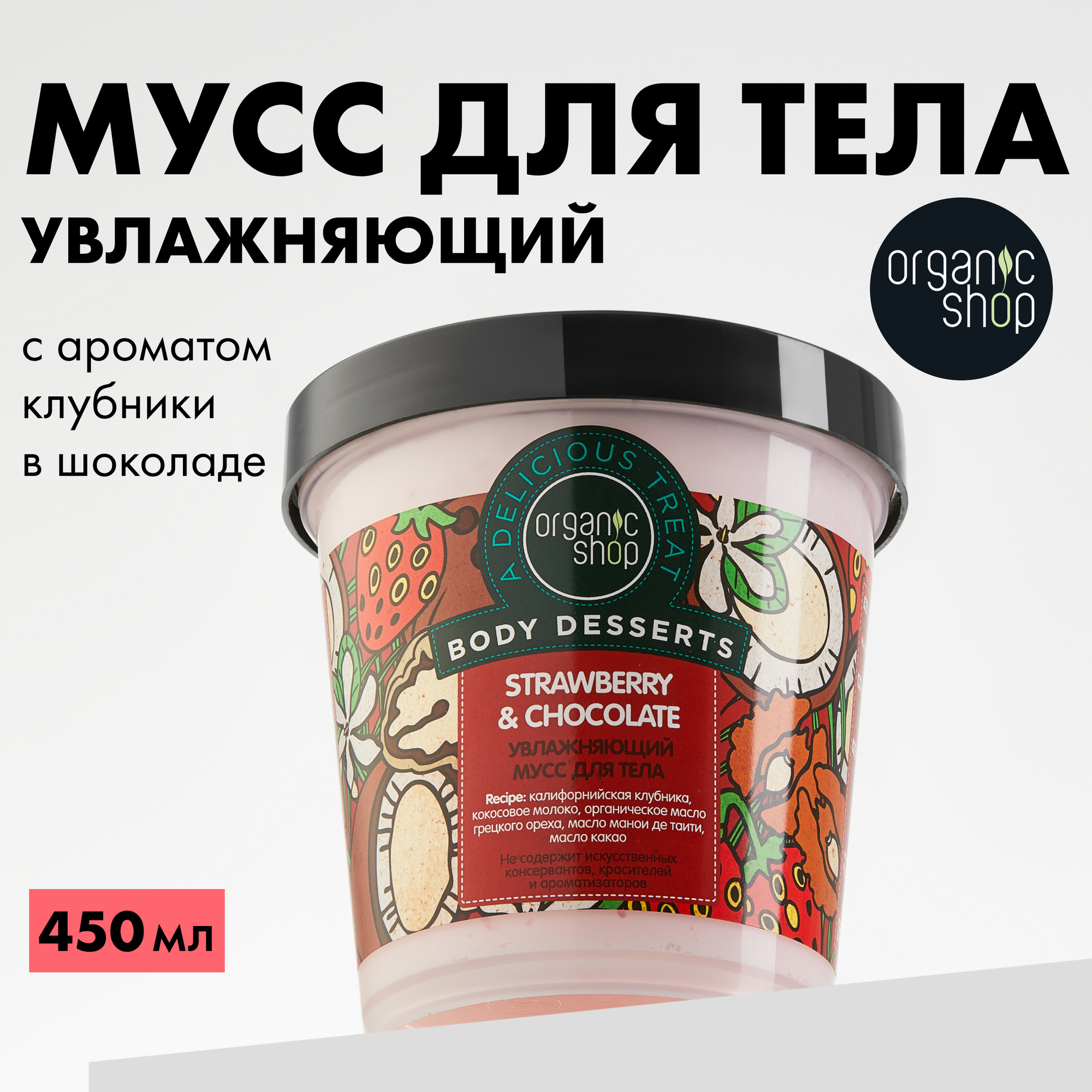 Organic Shop Body Desserts Клубника и шоколад Крем мусс для тела увлажняющий и питательный с маслом какао 450 мл