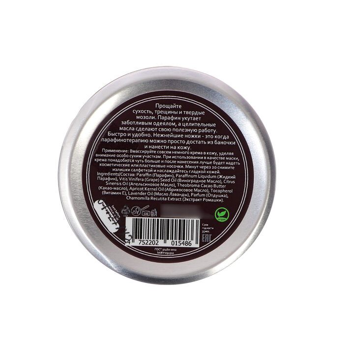 | Состав | Paraffin (Парафин), Paraffinum Liquidum (Жидкий Парафин), Vitis Vinifera (Grape) Seed Oil (Виноградное Масло), Citrus Sinensis Oil (Апельсиновое Масло), Theobroma Cacao Butter (Какао-масло), Apricot Kernel Oil (Абрикосовое Масло), Tocopherol (Витамин Е), Lavender Oil (Масло Лаванды), Parfum (Отдушка), Chamomilla Recutita Extract (Экстракт Ромашки). |
