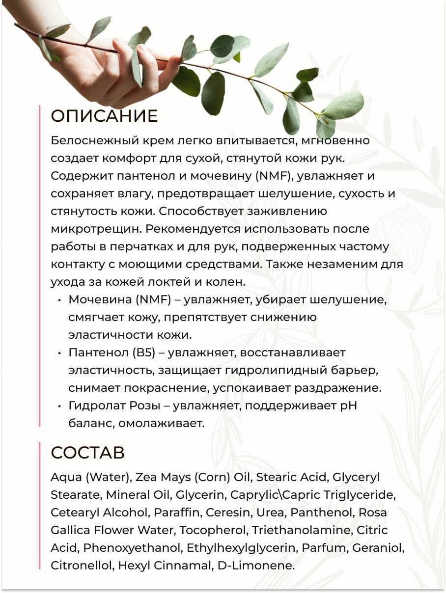 | Плюсы: | Хорошо впитывается и увлажняет кожу, для сухих рук и зимы - самое то! |