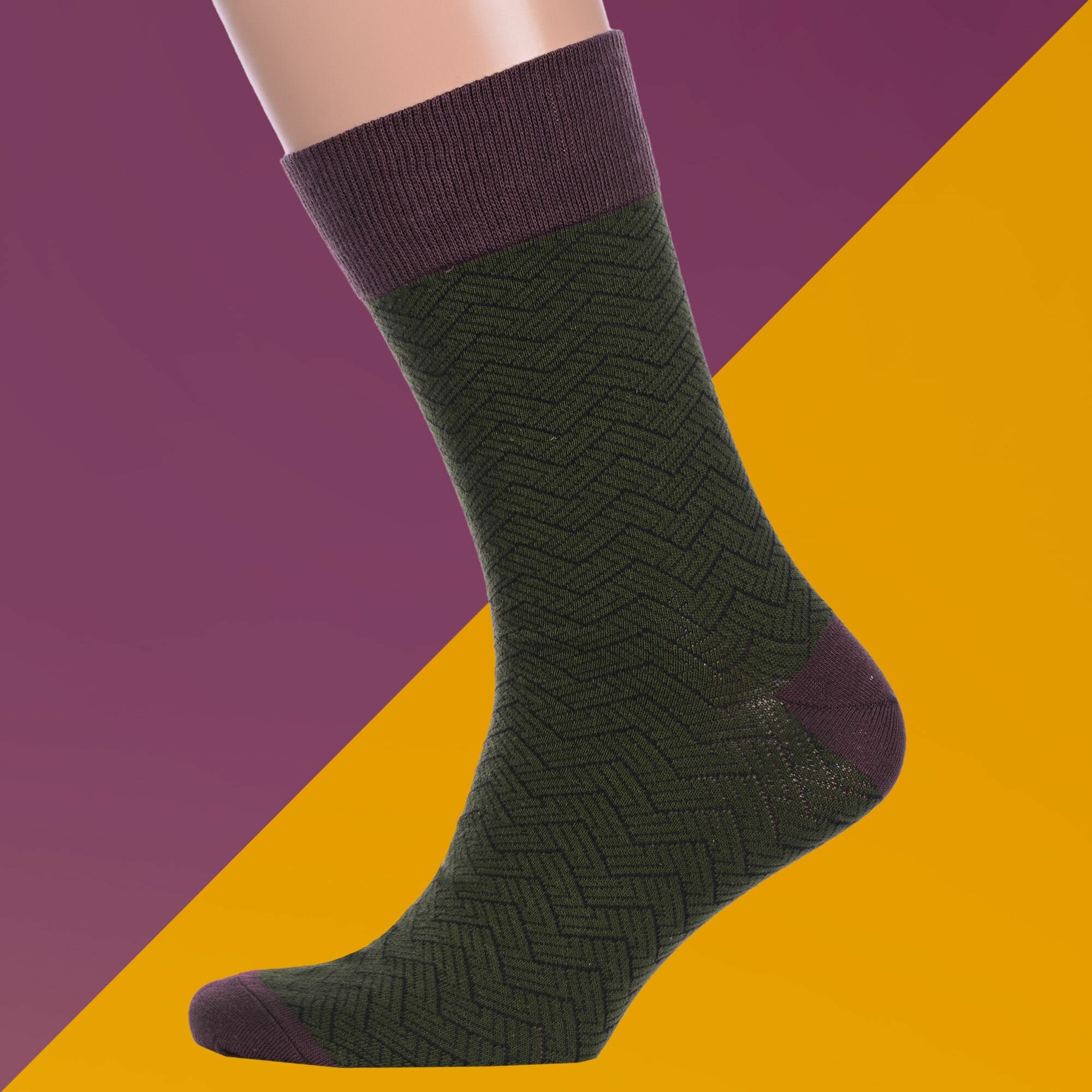 Купить 5-1МБ19-11 Набор из 5 пар мужских носков Flappers Peppers зеленые темно-синие коричневые полоска крестик принт рисунок высокие средние длинные хлопок хб хлопковые флэпперс пепперс комплект упаковка