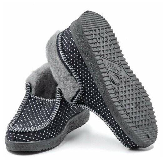 Бабуши женские модель-10 (текстиль, иск. мех, ПВХ) (36, Горох, Черный)