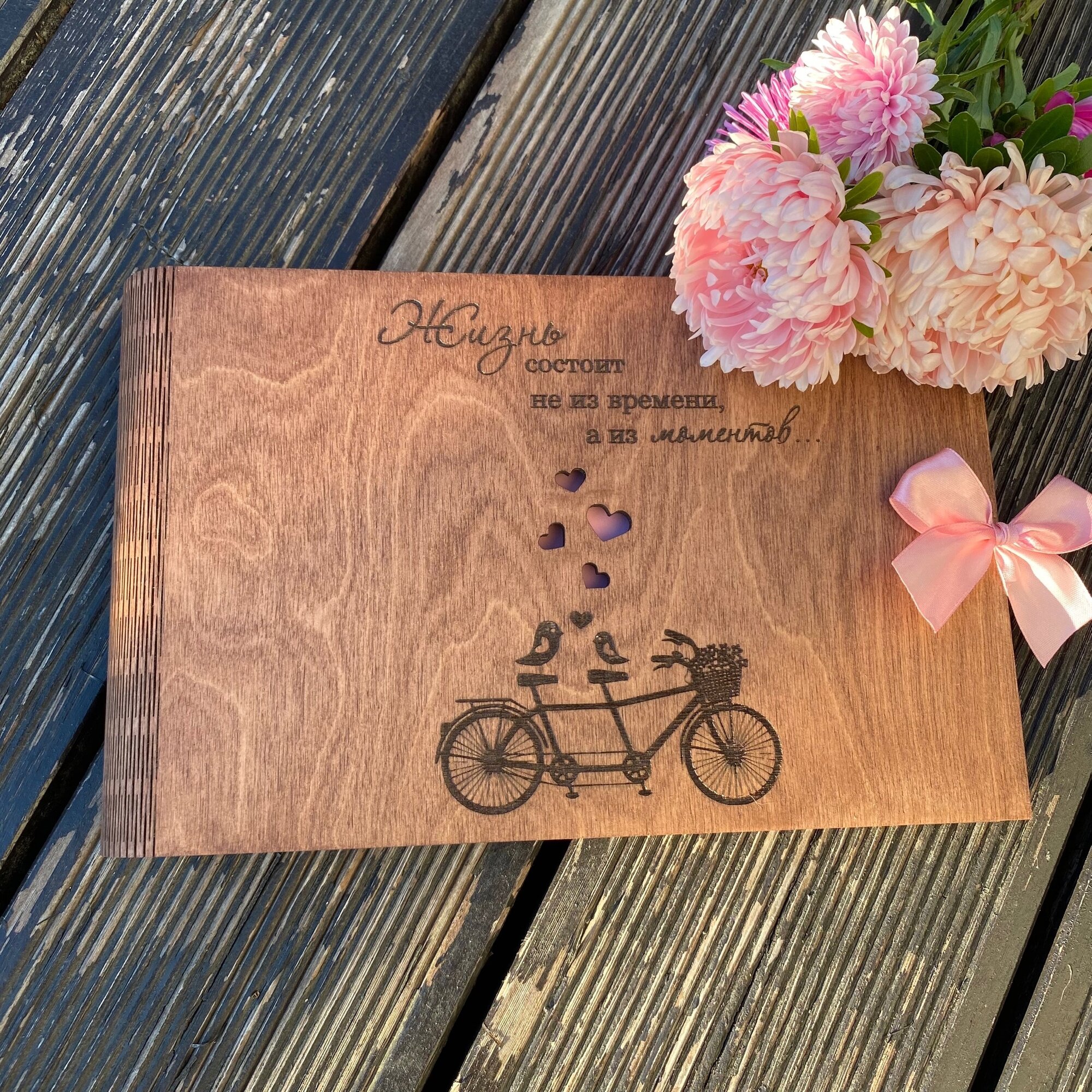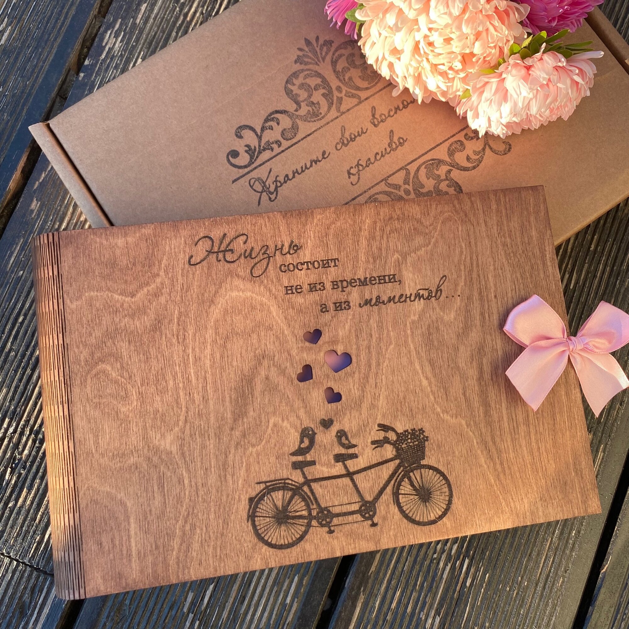 Фотоальбом с деревянной обложкой интересное: