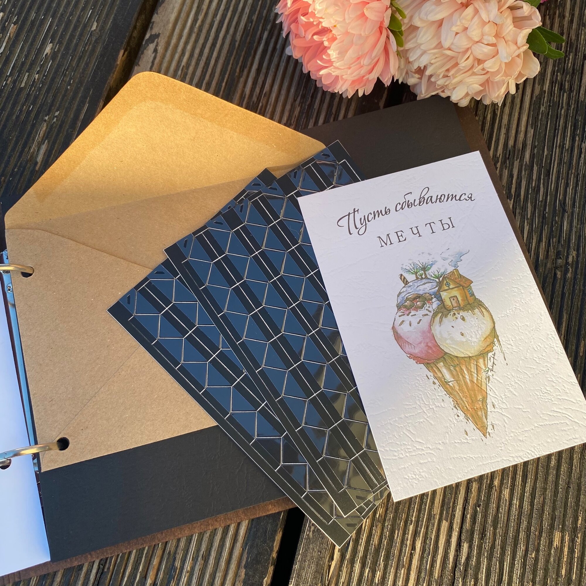 Фотоальбом с деревянной обложкой с черными листами