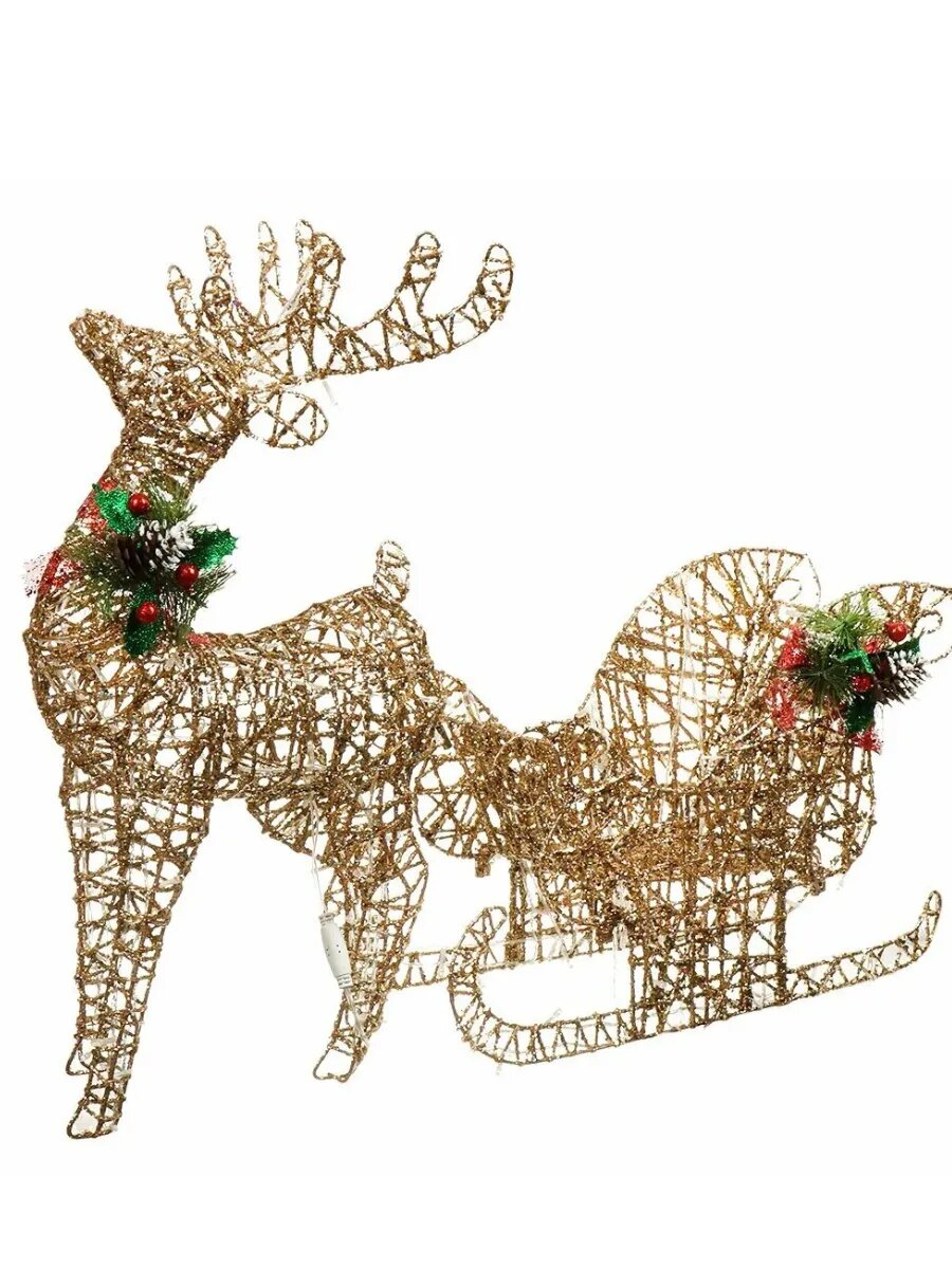 Новогодняя светящаяся фигура "Олень Деда Мороза" с санями