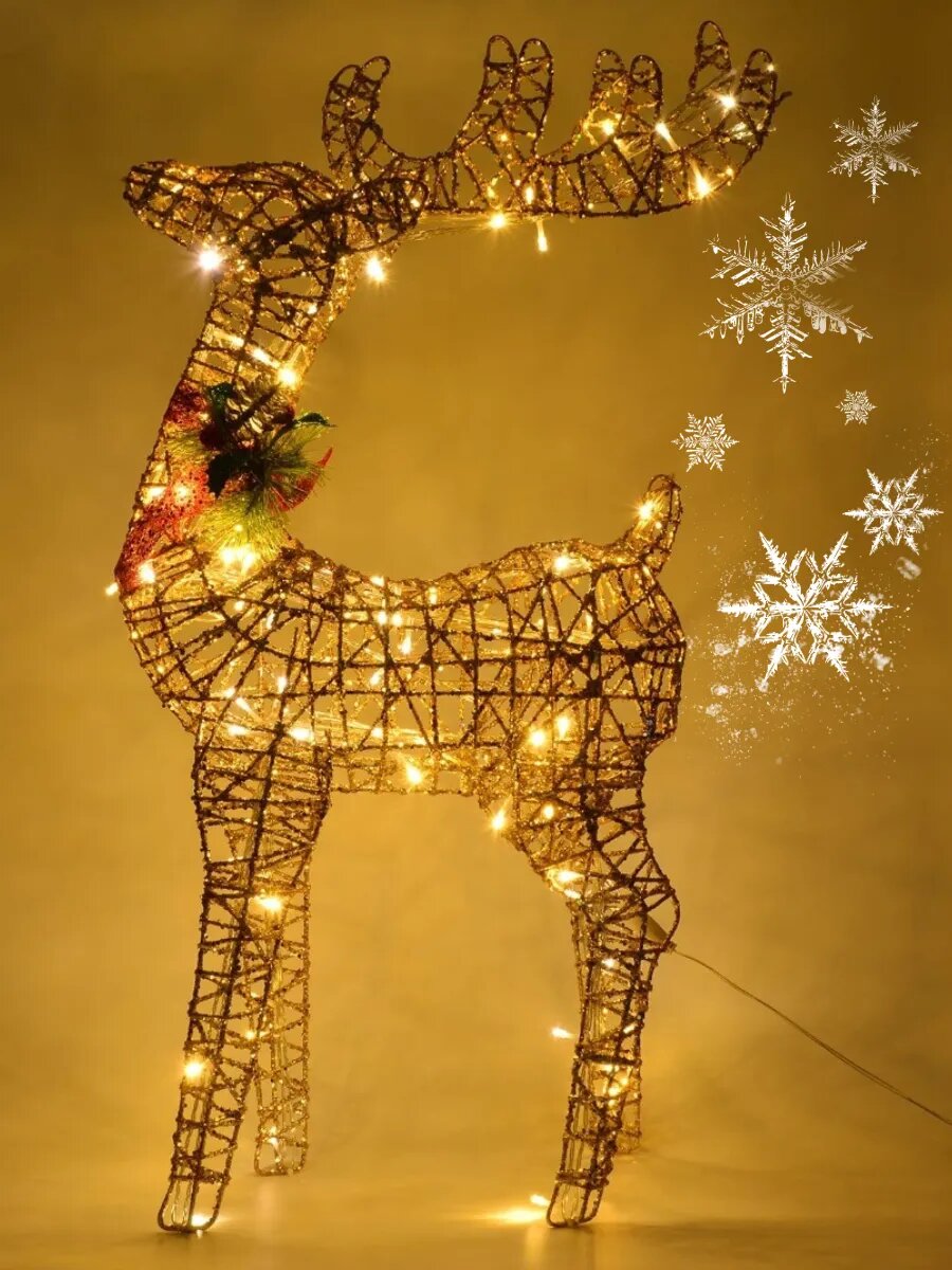 Новогодняя светящаяся фигура "Олень Деда Мороза" 70см
