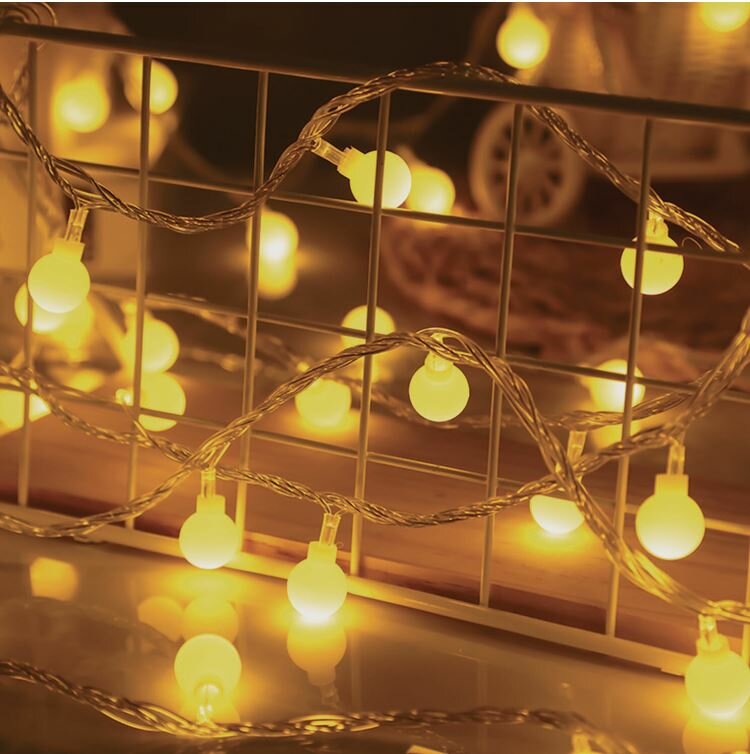 Электрогирлянда-нить Золотая сказка комнатная, "Шарики", 10 м, 80 LED, теплый белый свет, 220 V, контроллер