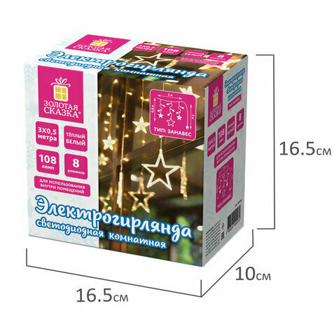 Электрогирлянда-занавес комнатная "Звезды" 3х0,5м, 108LED, хол. белый, 220V, золотая сказка, 591355