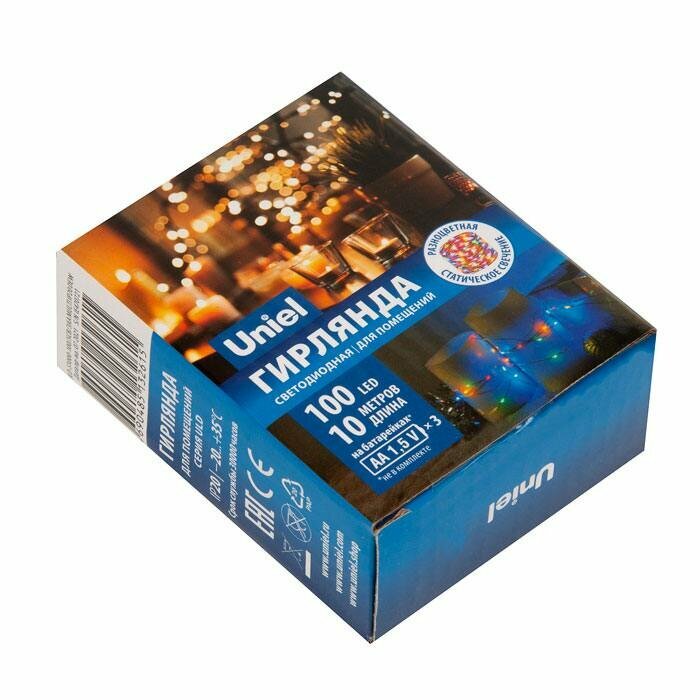 гирлянда нить на батарейках роса MULTICOLOR UL-00005483 ULD-S1000-100/SCB/3AA IP20 DEW