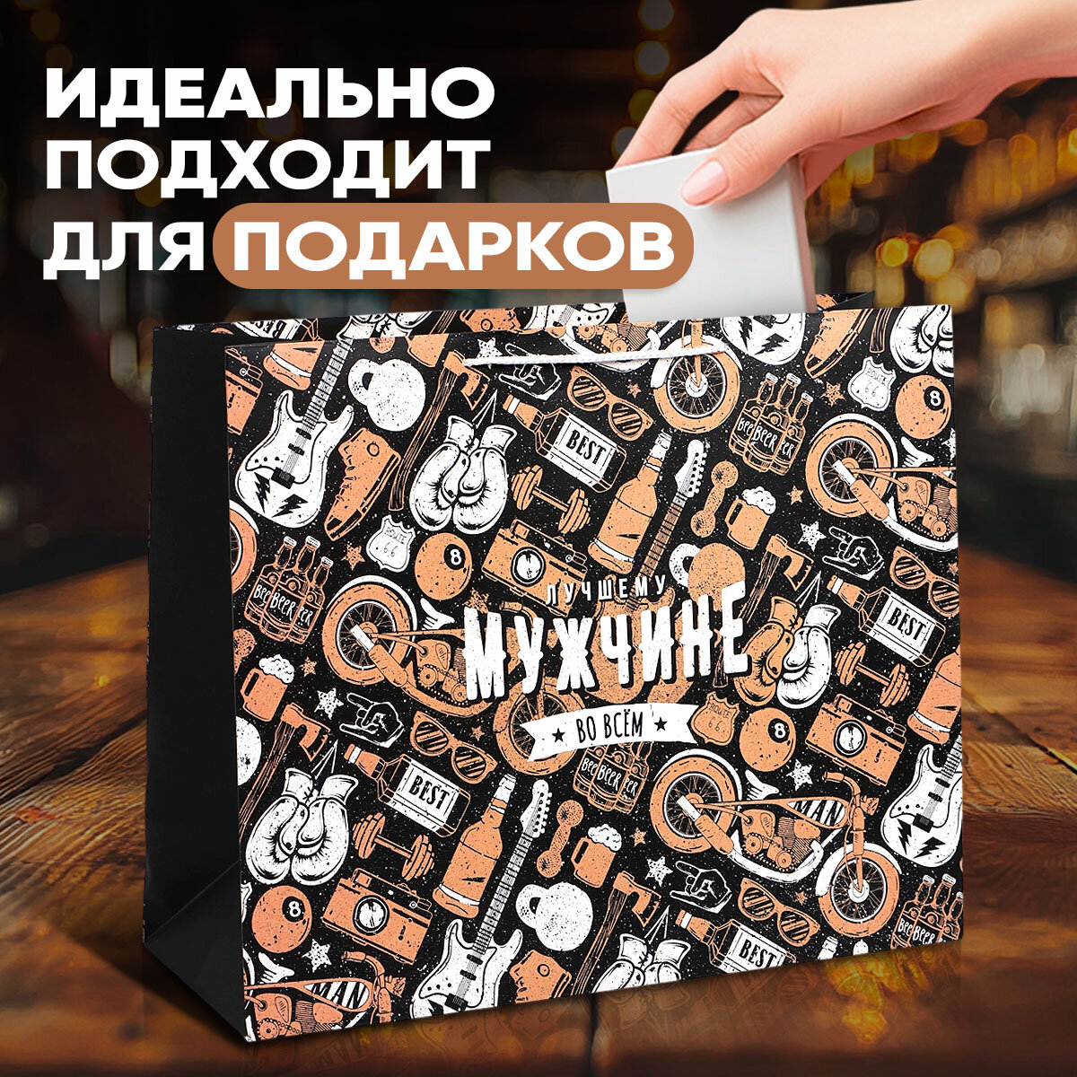 СохранитьПодарочный пакет ламинированный «Лучшему мужчине», большой 49 × 40 × 19 см, для упаковки подарка интересное: