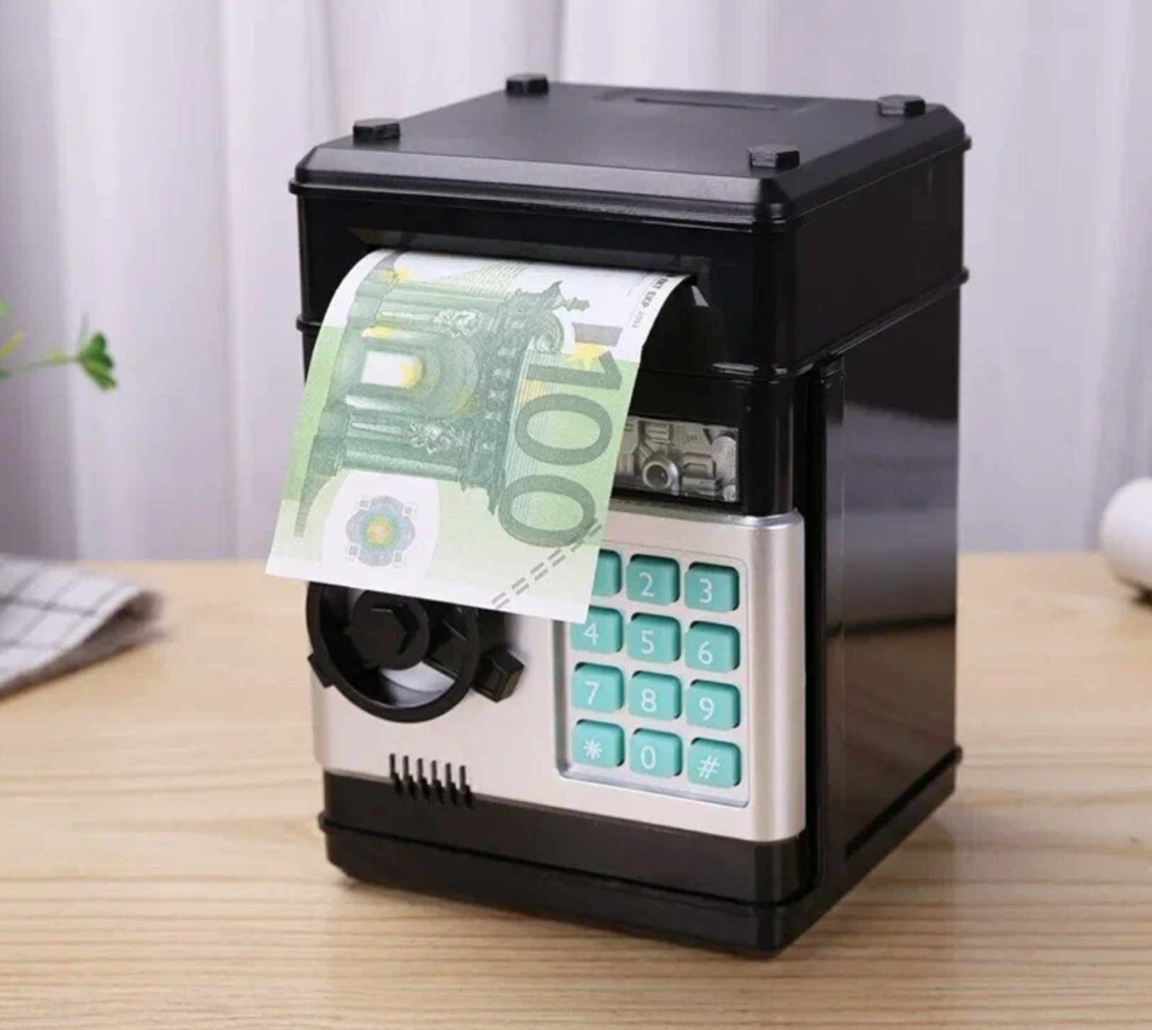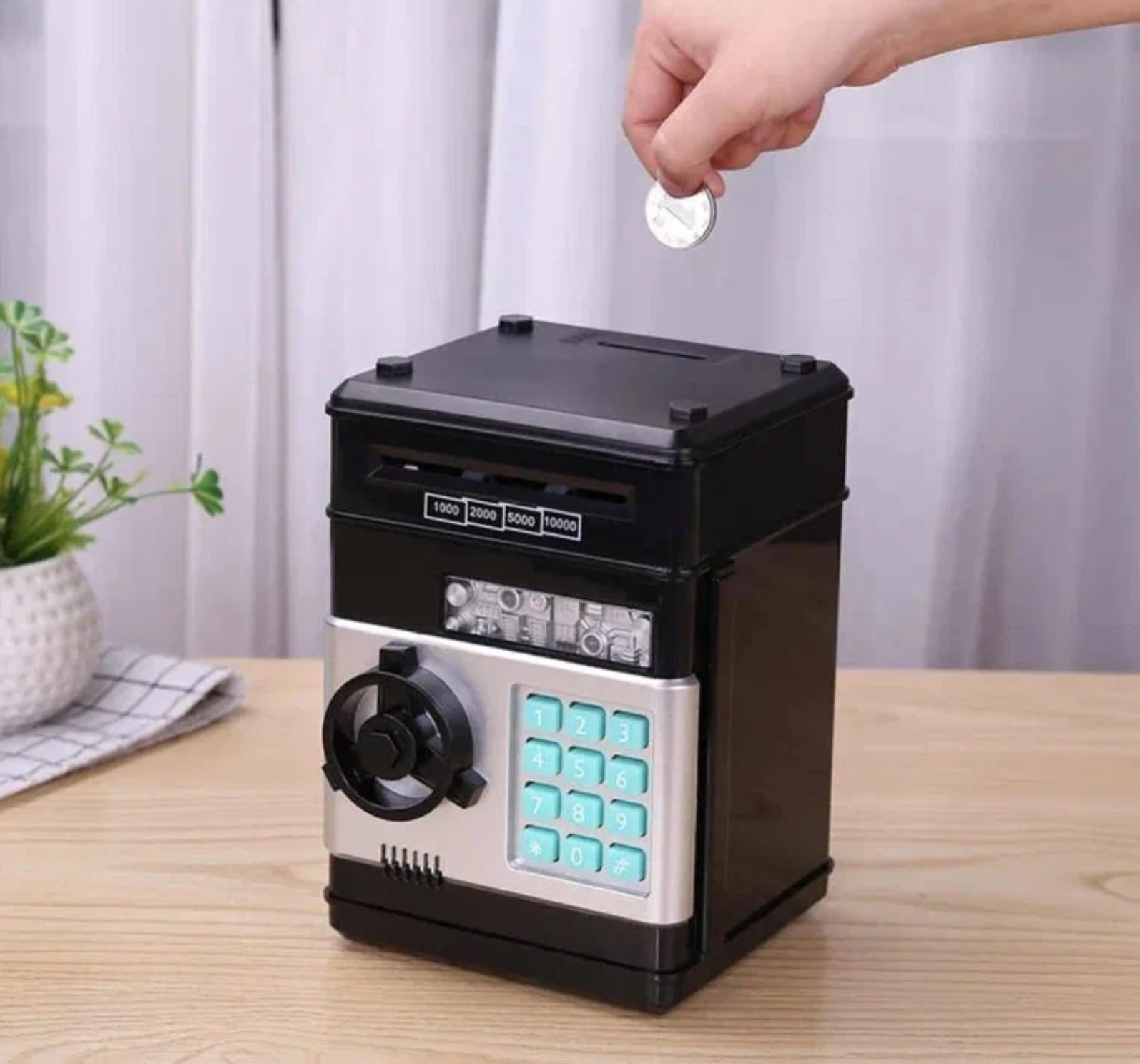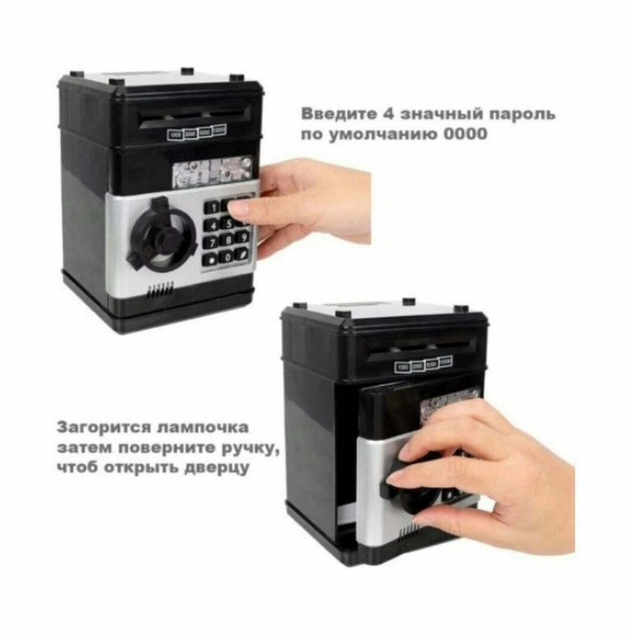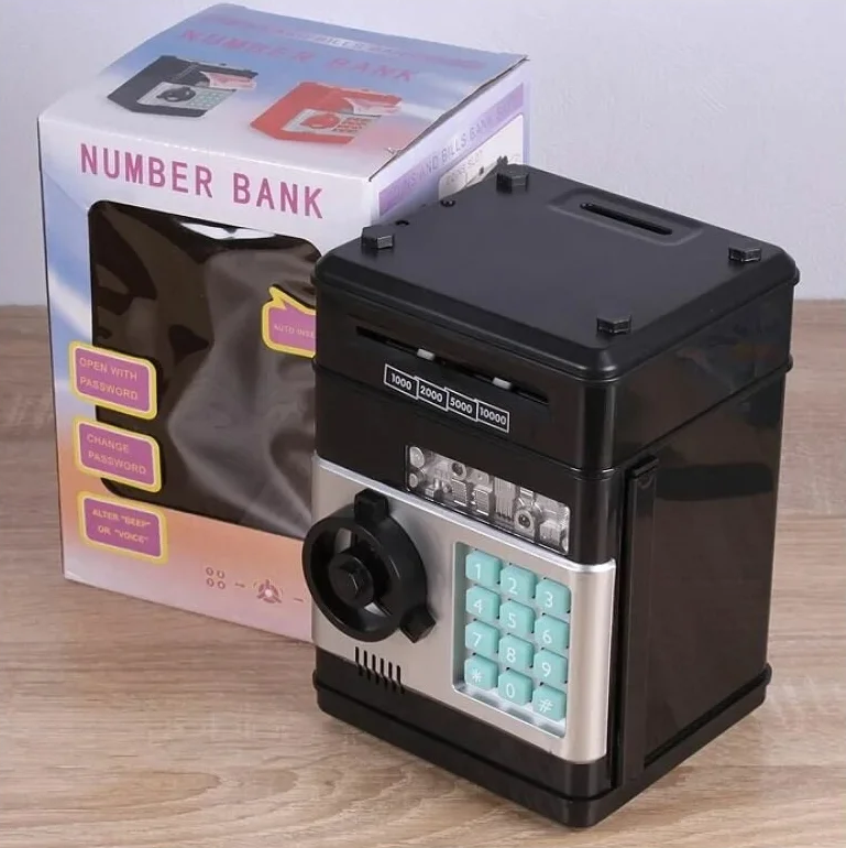 Копилка сейф Банкомат для денег с кодовым замком, кюпюроприемником электрическим.