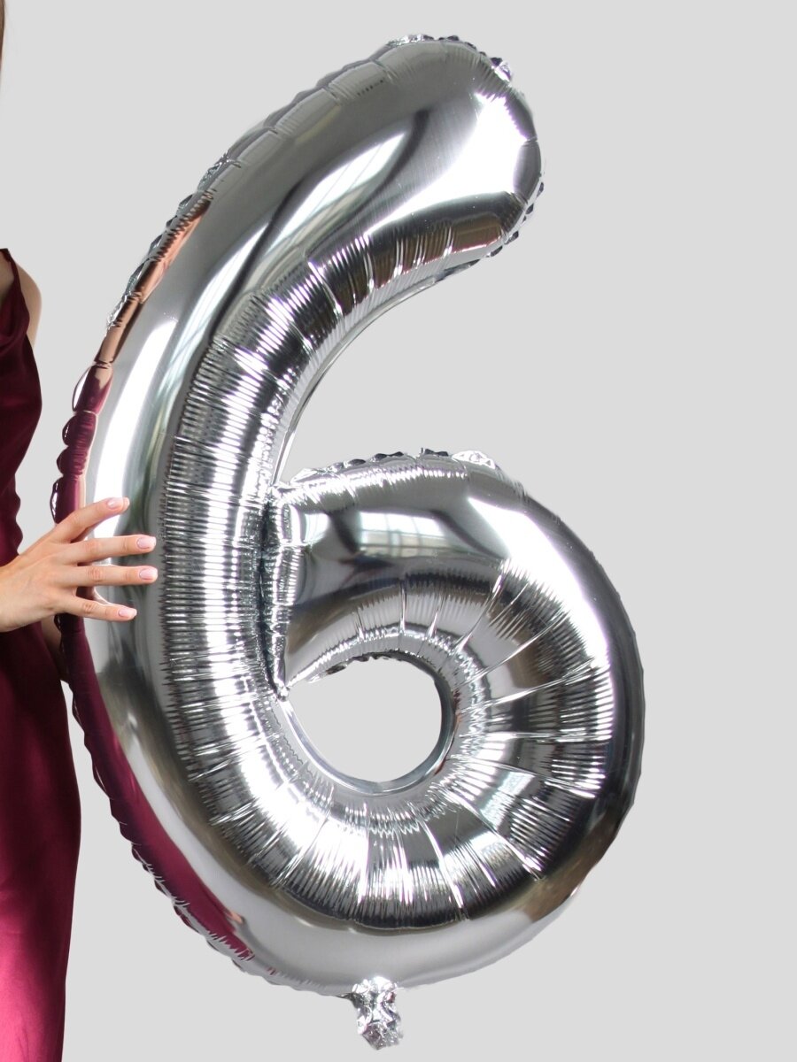 СохранитьФольгированный воздушный шар цифра 6 шесть серебро 100см - Мосшар интересное: