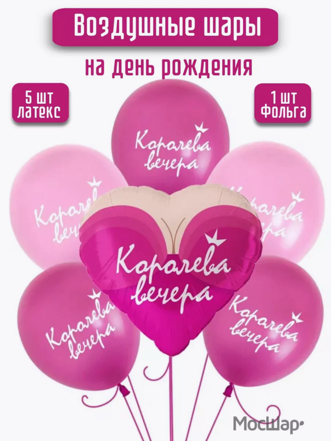 СохранитьНабор воздушных шаров МосШар "Царица" для праздника, 1 упаковка, 6 штук интересное: