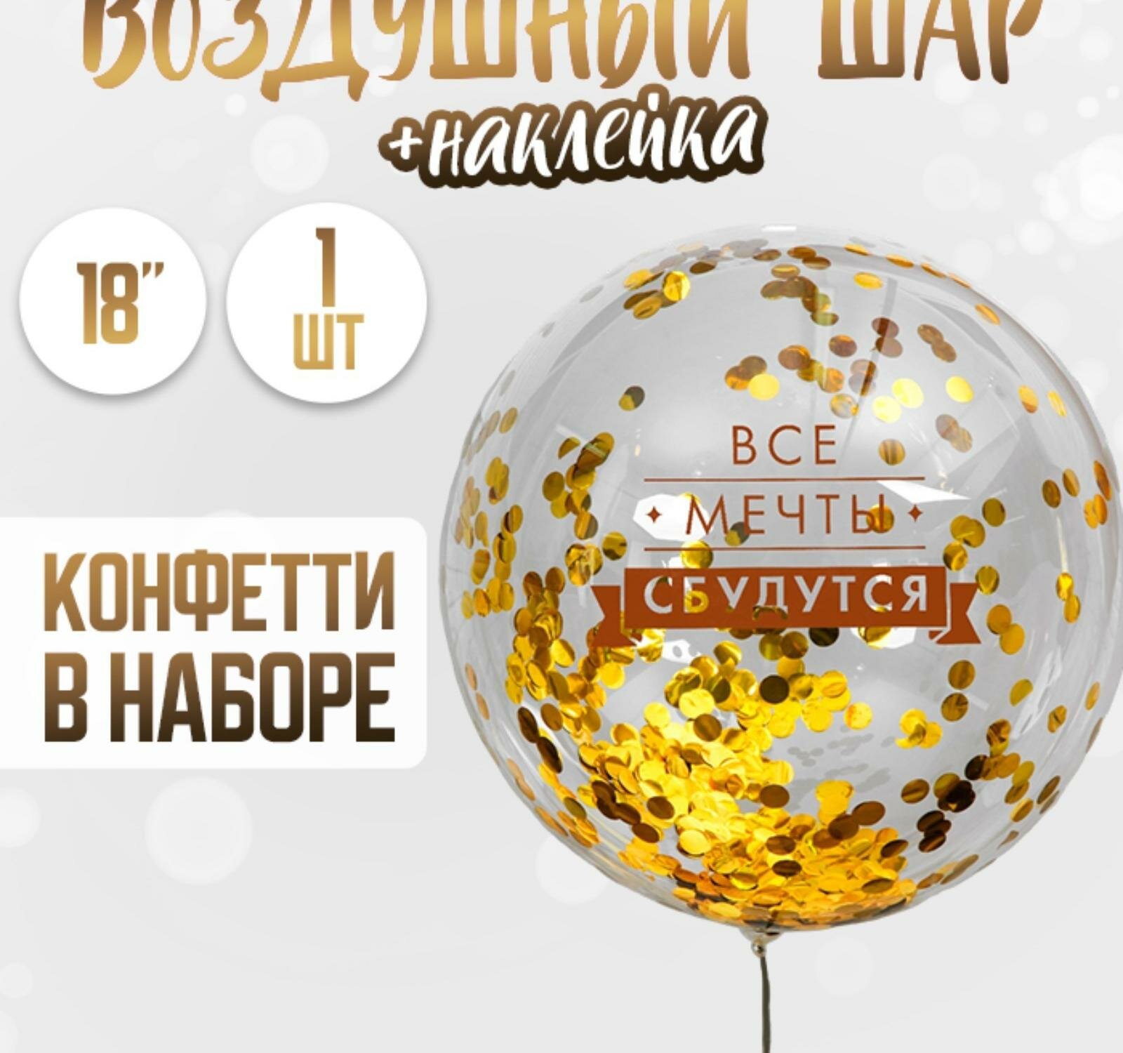 Воздушный шар полимерный 18""Все мечты сбудутся", прозрачный, с конфетти интересное: