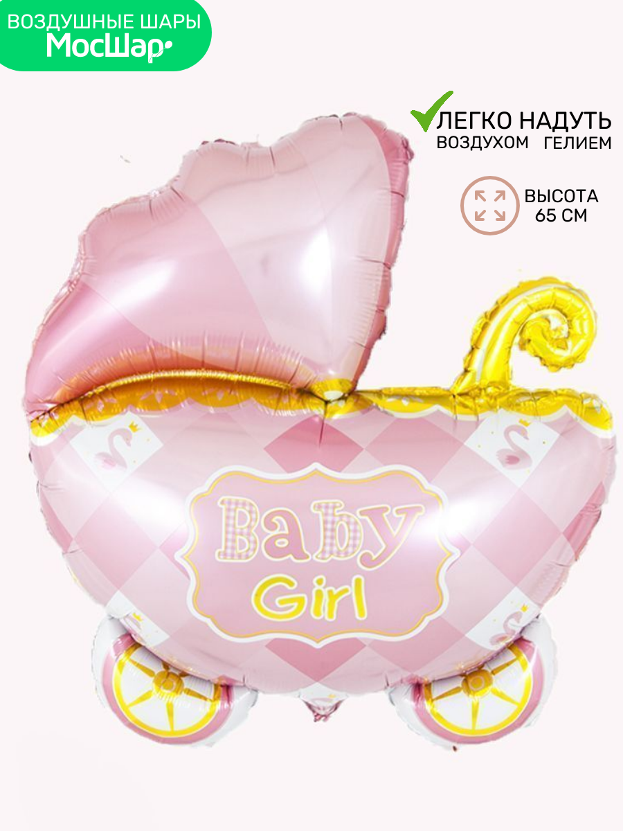 Купить Воздушный шар фольгированный на выписку, рождение девочки коляска розовая 87*67 см , МосШар