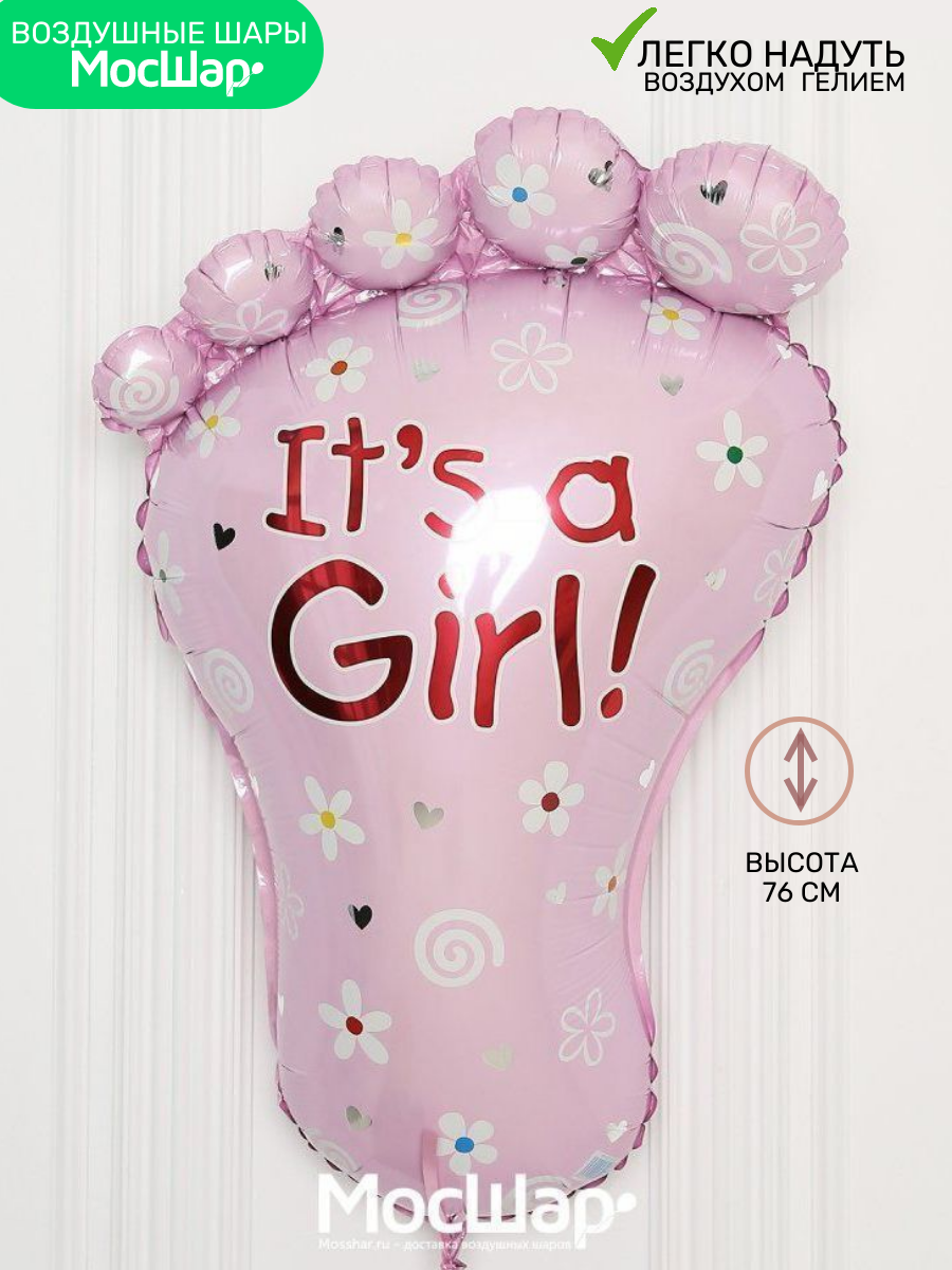 Купить Воздушный шар фольгированный на выписку, рождение девочки, Ступня/пяточка розовая 76 см, МосШар