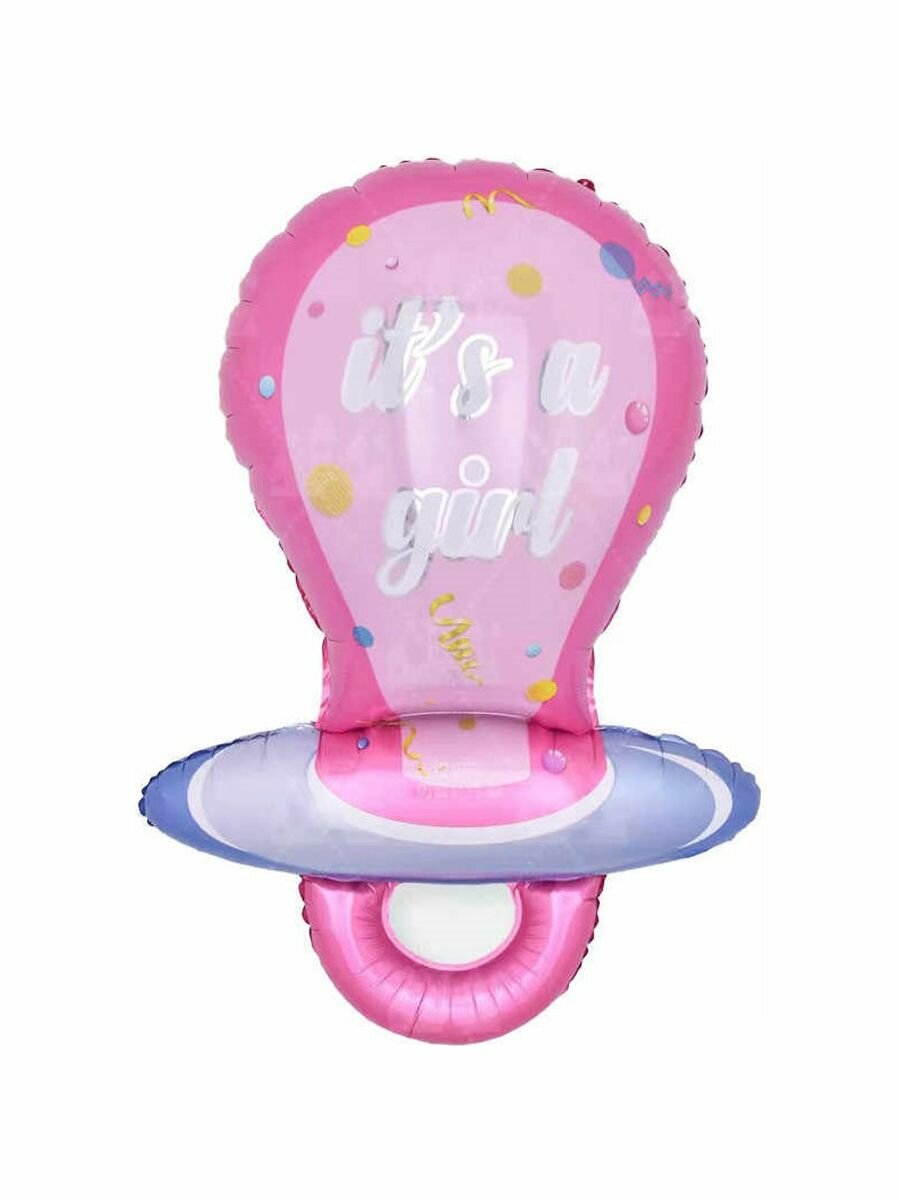 Воздушный шар фольгированный на выписку, рождение девочки пустышка розовая 97 см , МосШар
