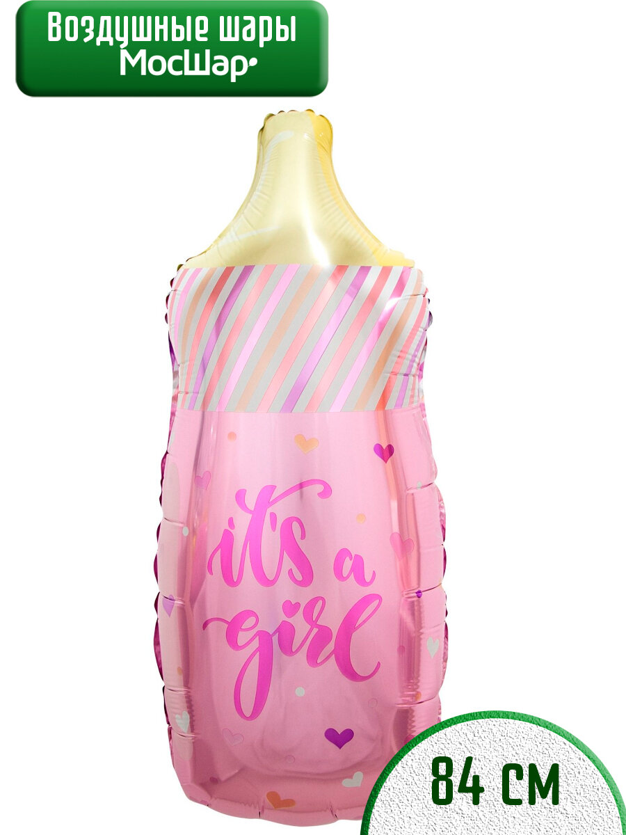 Купить Воздушный шар фольгированный на выписку, рождение девочки бутылочка розовая 84 см , МосШар
