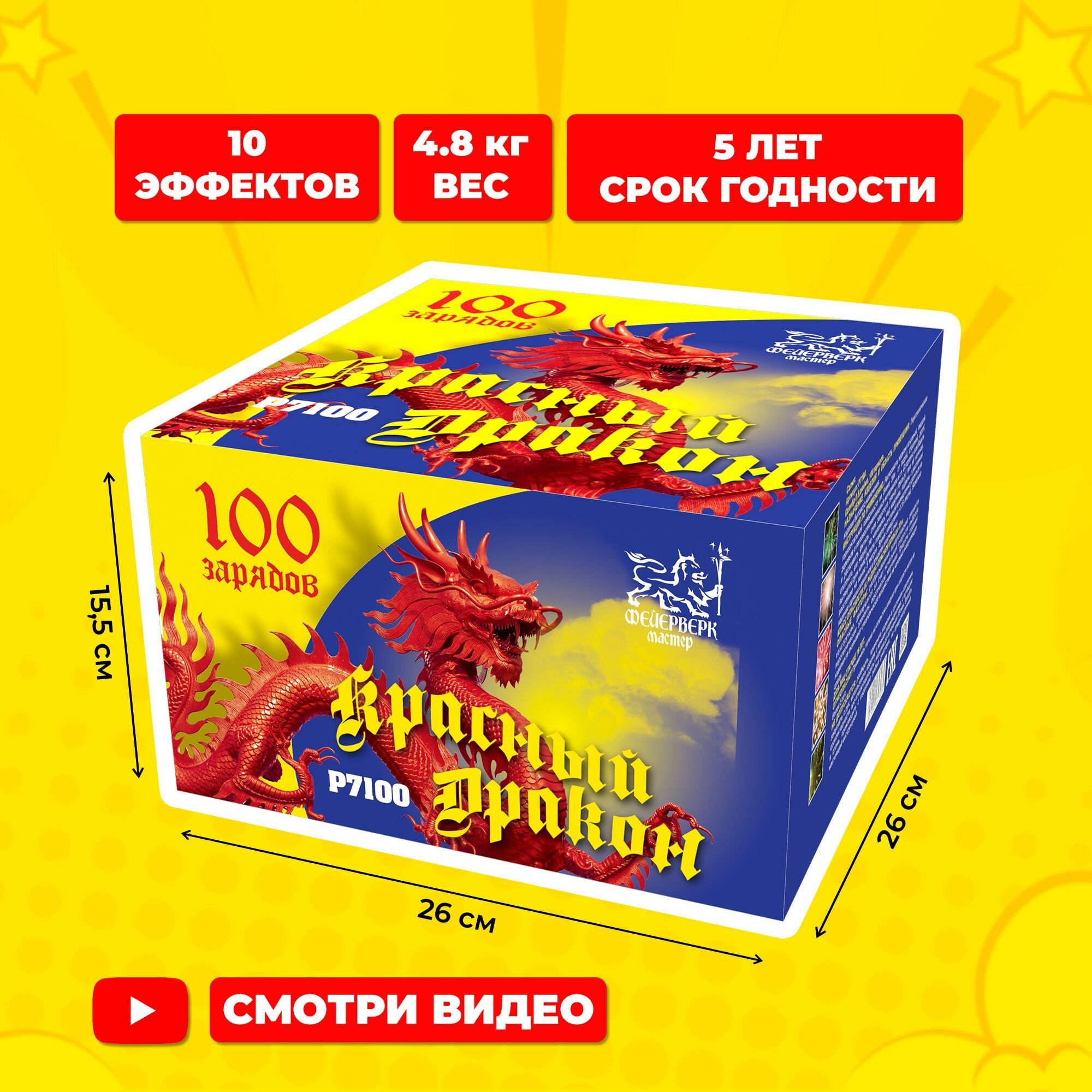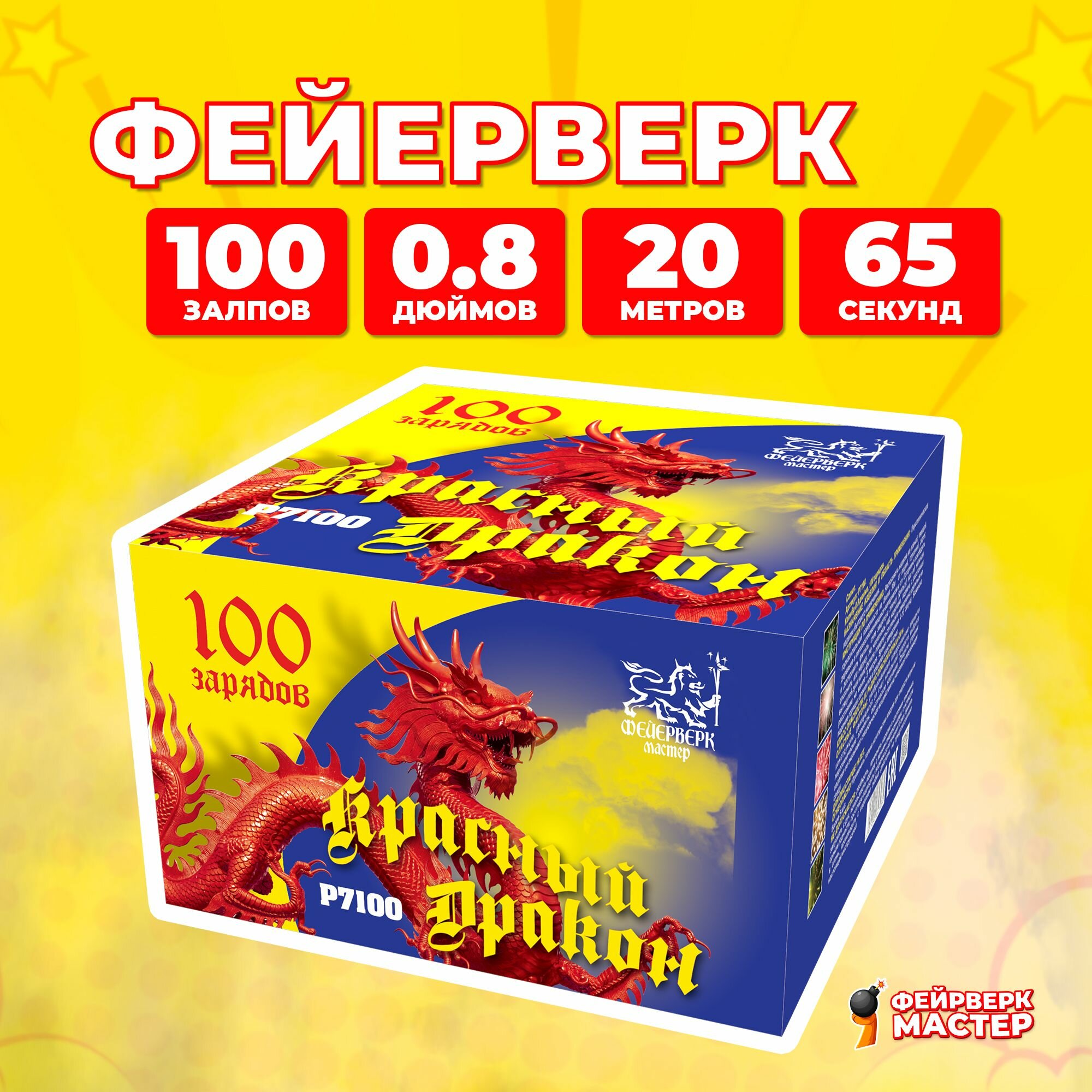 Батарея салютов Фейерверк Мастер Красный дракон P7100, 100 залпов