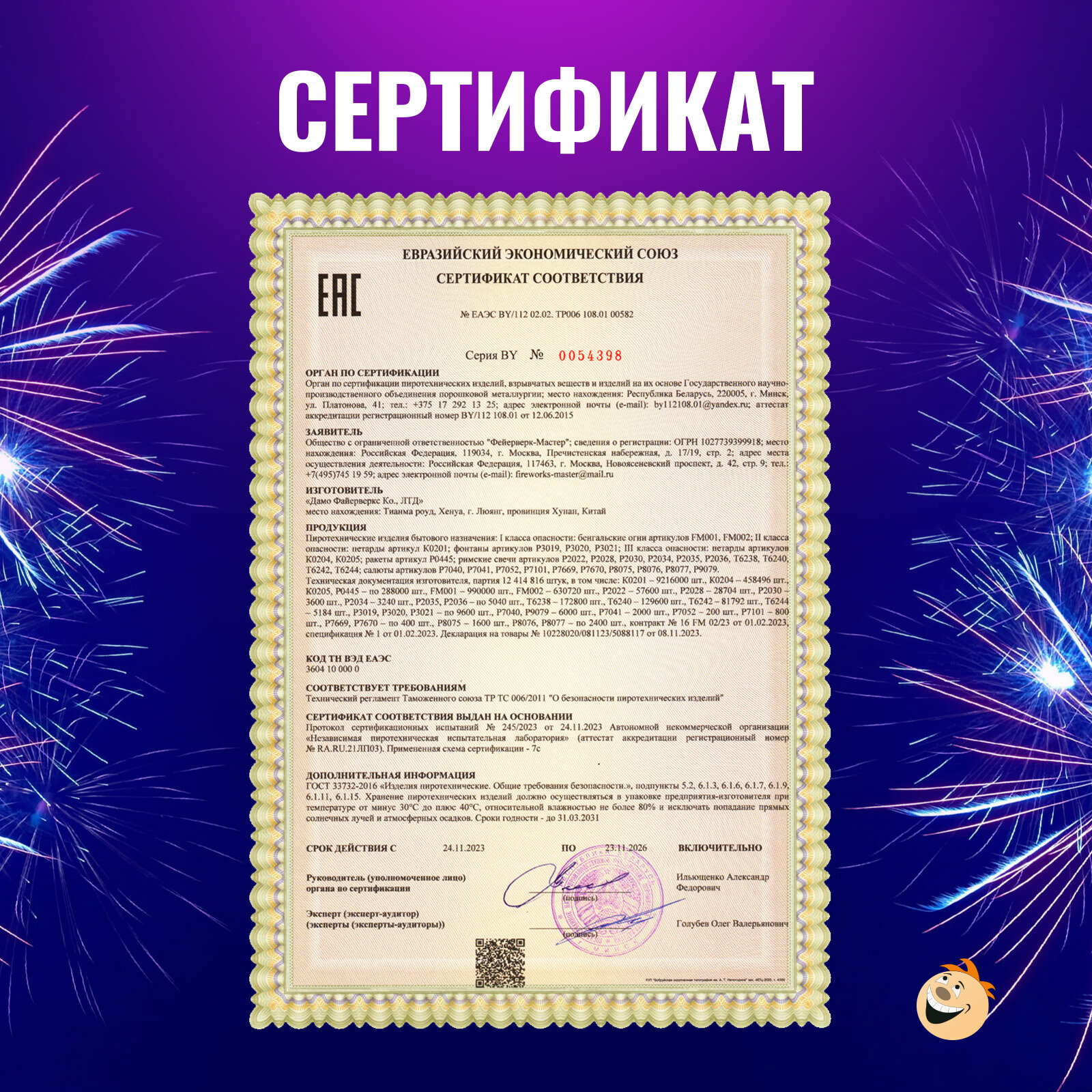 | Особенности фейерверка | вращающийся / высотный / красочная концовка / многоуровневый / наземный / парковый / разнокалиберный |