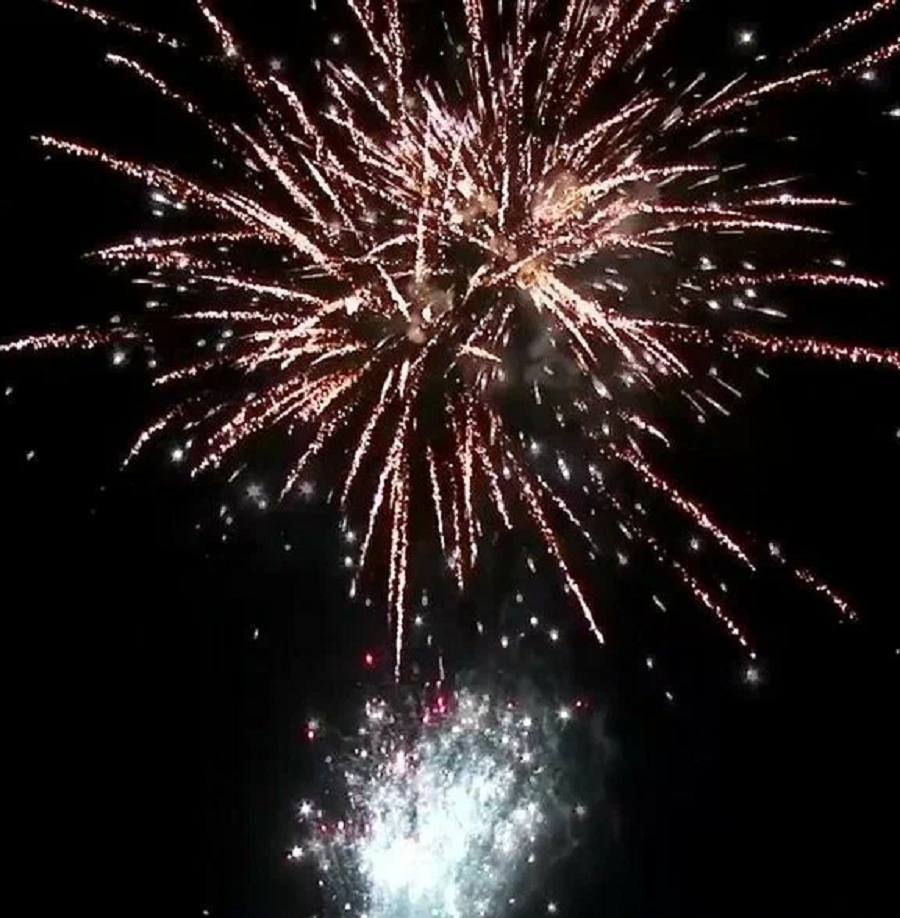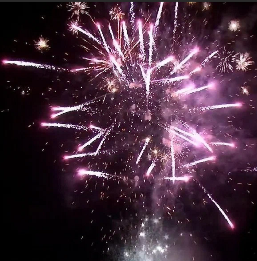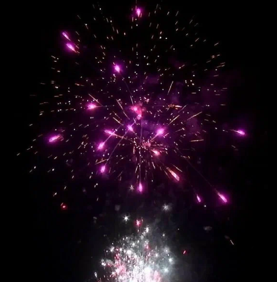 | Эффекты | двухуровневый салют: внизу - красно-белый мерцающий залп (бурак). вверху: множество серебряных ниспадающих нитей (парча); множество серебряных ниспадающих нитей (парча) и зеленое мерцание; множество золотых ниспадающих нитей (парча) и треск; фиолетовая сфера (пион) и облако трещащих разрывов (трещащая хризантема); синяя сфера (пион) и золотое мерцание; серебряные звезды с пышными трещащими хвостами (трещащий кокос) и синие звезды; красные звезды с пышными хвостами (кокос) и облако трещащих разрывов (трещащая хризантема) |