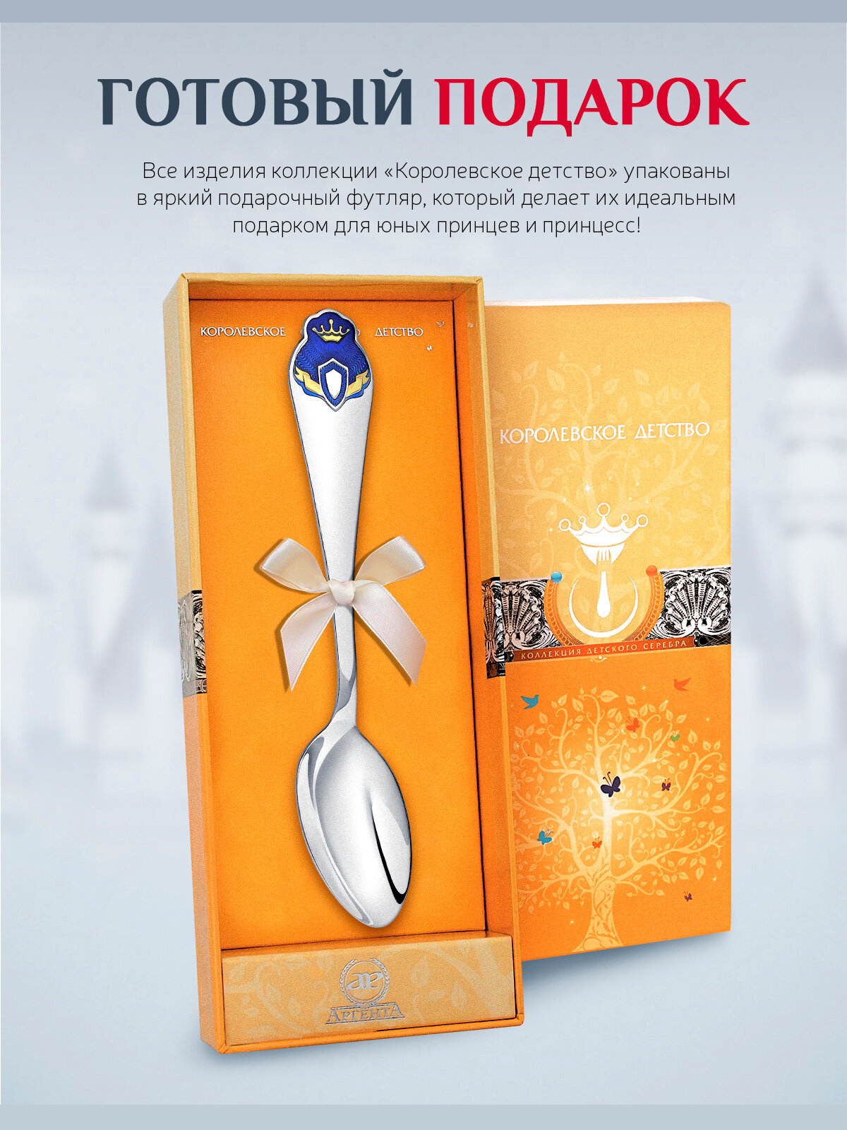 Ложка детская серебряная для кормления "Принц" с позолотой с эмалью в футляре интересное: