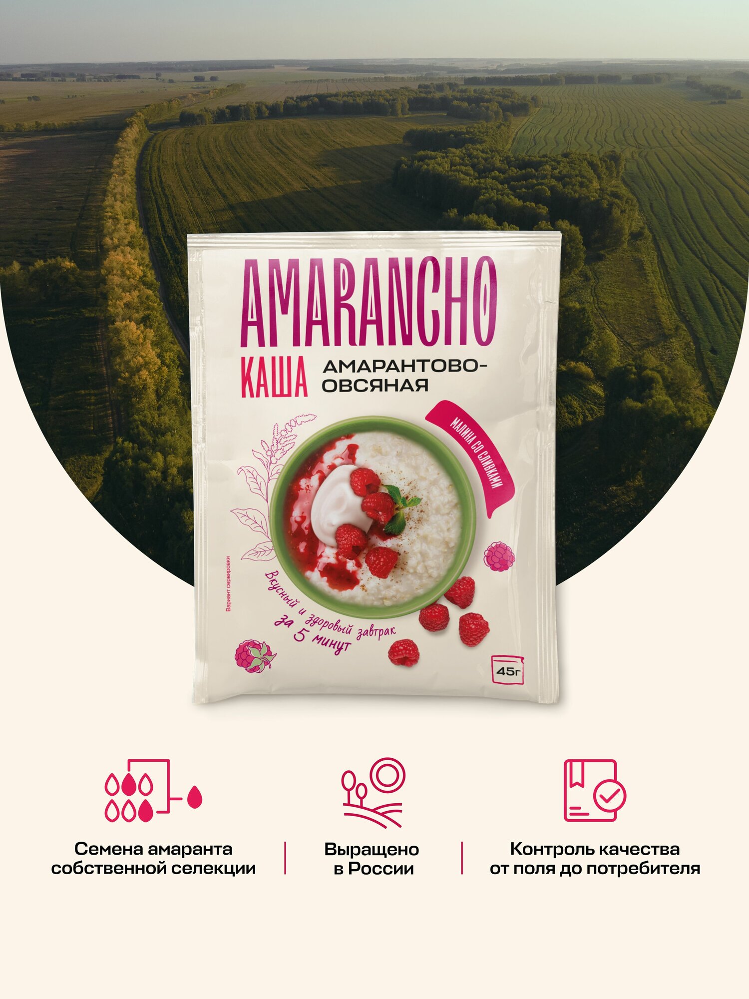 Купить Каша амарантово-овсяная малина со сливками "Amarancho", быстрого приготовления, 10 пакетиков по 45 г