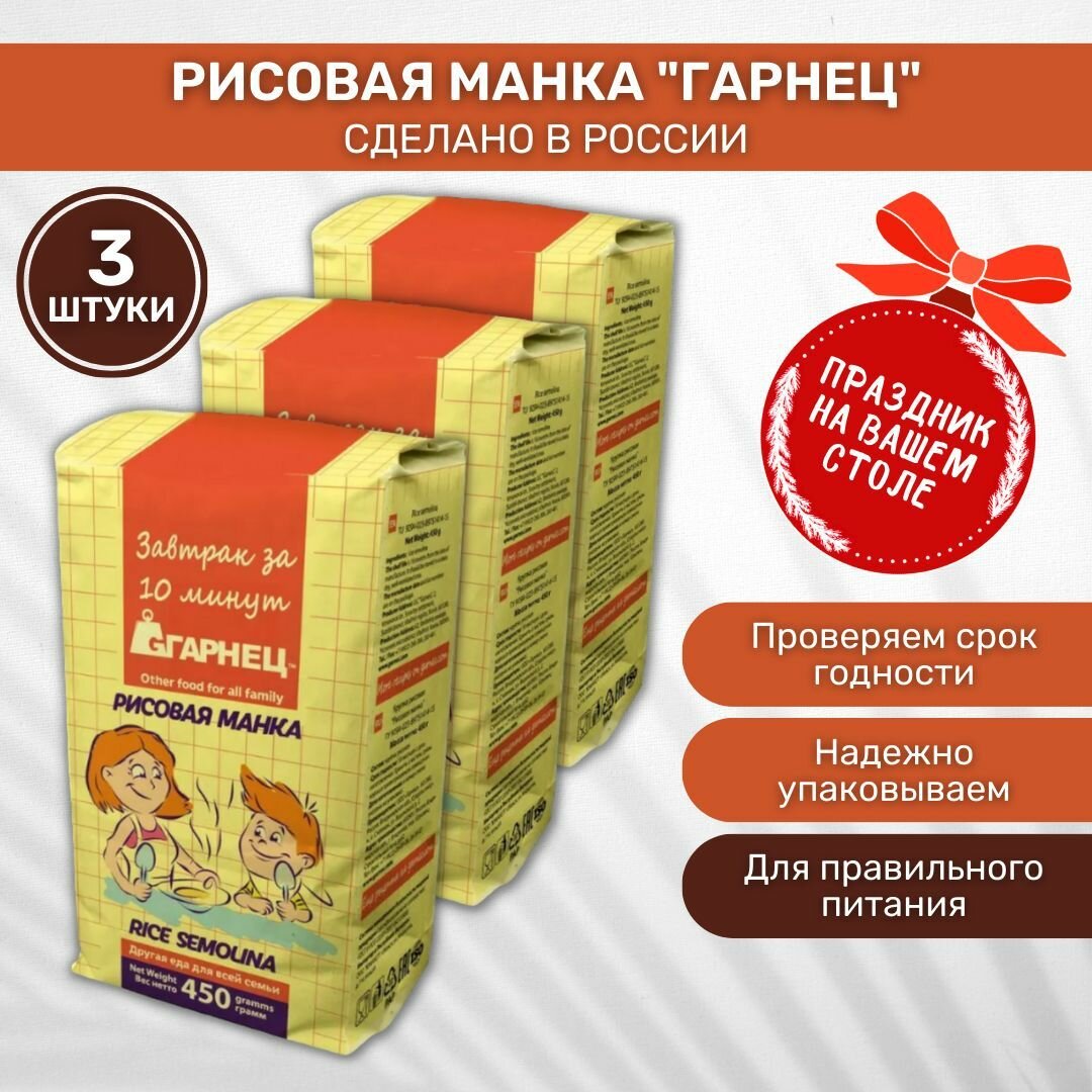 Крупка Рисовая манка, от производителя Гарнец, 450г (3 штуки в наборе)