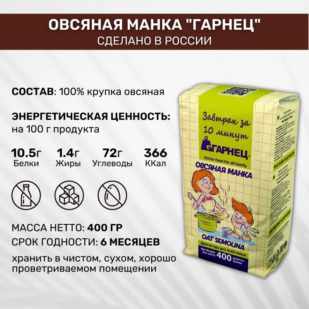 СохранитьКрупка Garnec Гарнец Овсяная манка 3 шт по 400г интересное: