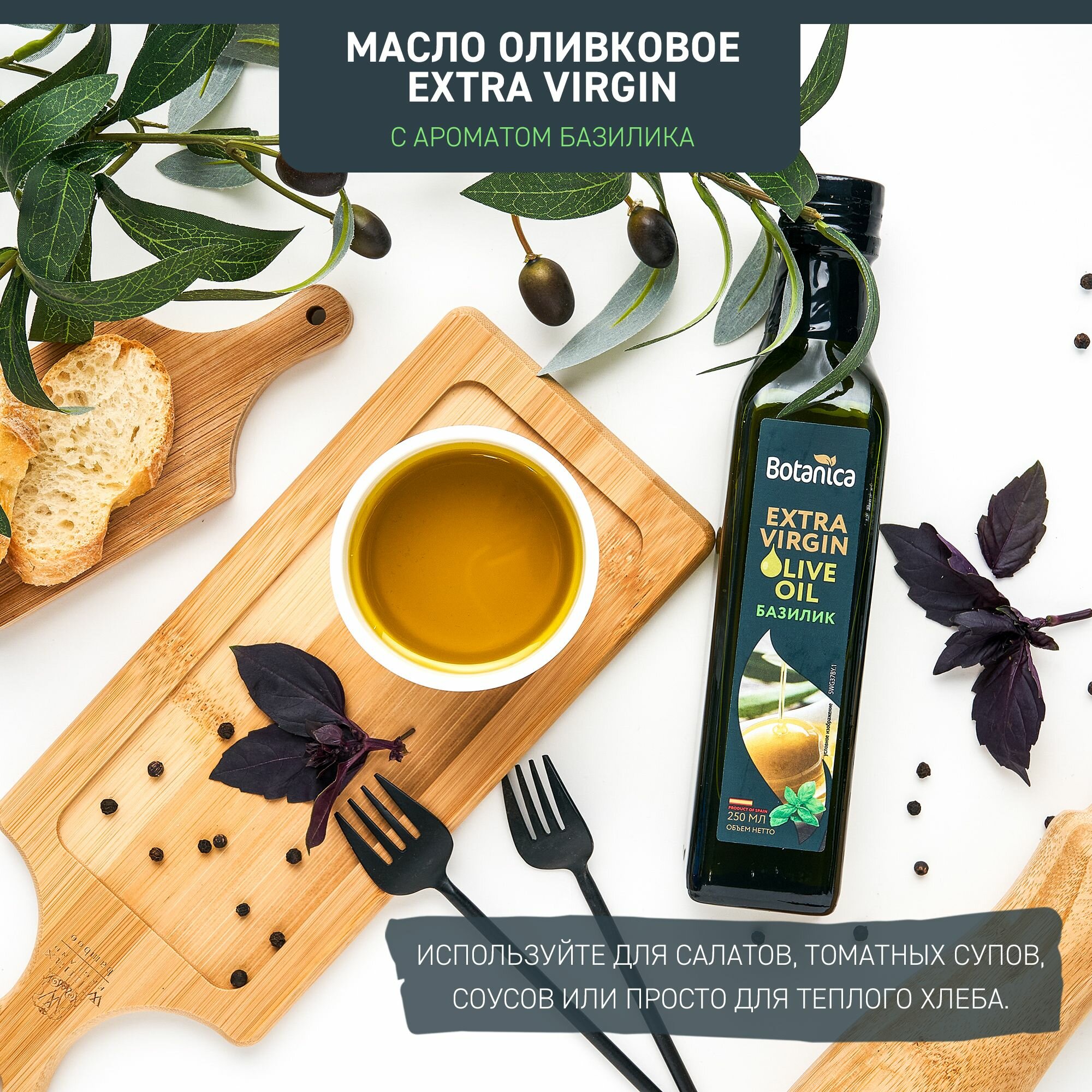 Купить Масло оливковое нерафинированное Extra Virgin с ароматом базилика Botanica, 250мл