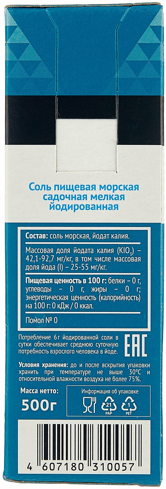 | Состав | соль морская, йодат калия |