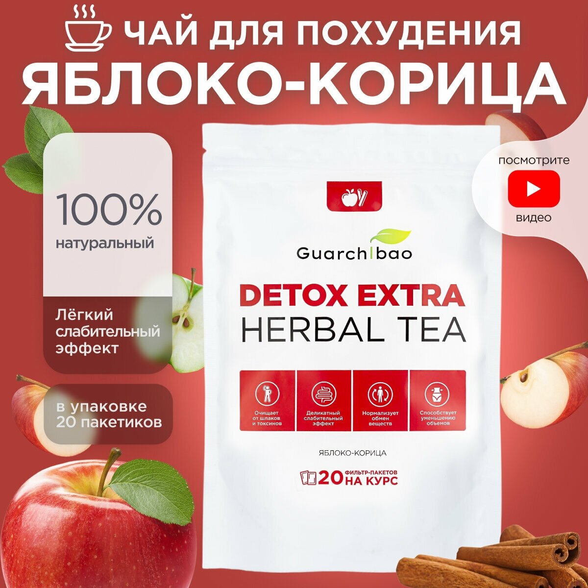 Купить Натуральный чай для похудения Guarchibao Detox Herbal Tea Яблоко-Корица. Детокс организма, деликатное очищение, улучшение пищеварения (20 пакетиков)