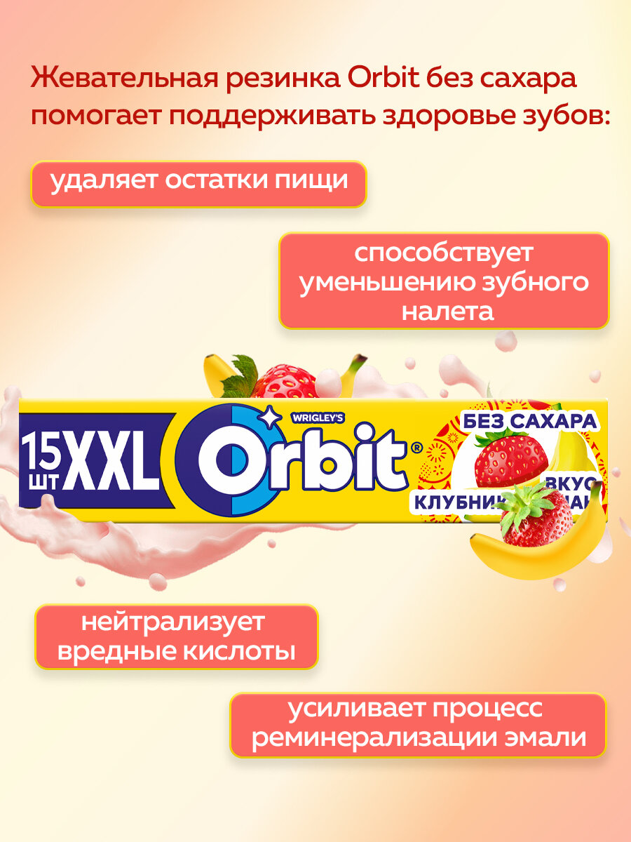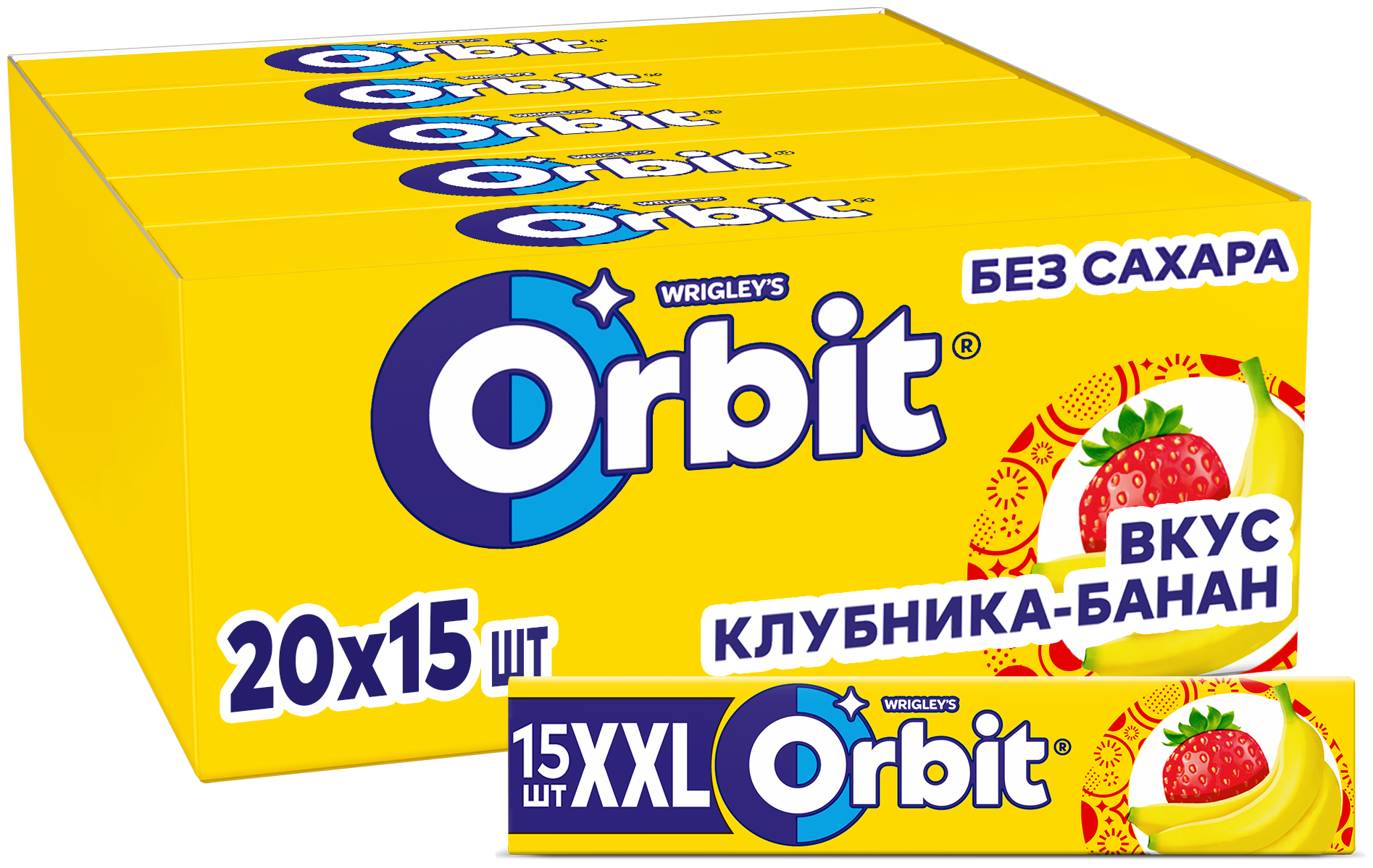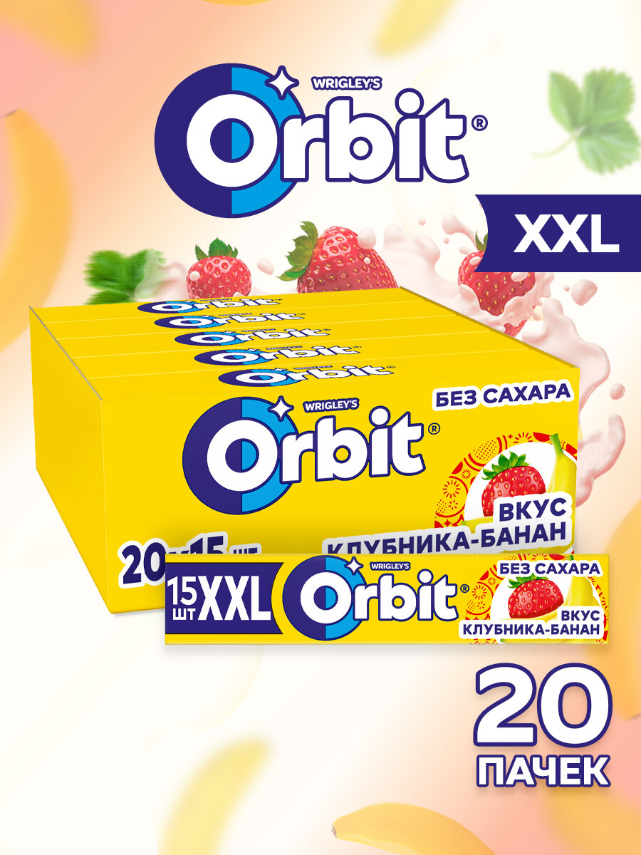 Купить Жевательная резинка Orbit XXL Клубника-Банан, без сахара, 20 пачек по 20,4 г