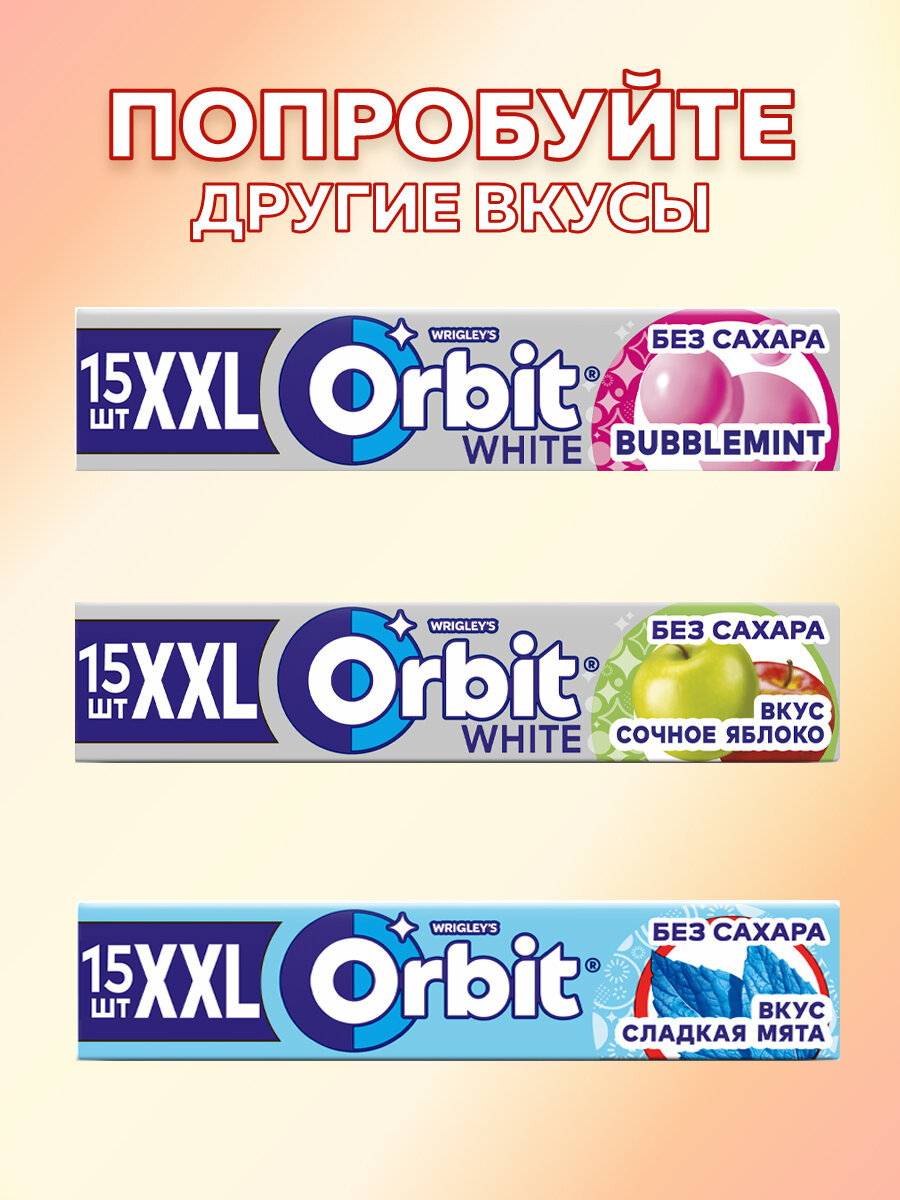 Жевательная резинка Orbit XXL White Сочное яблоко без сахара. по 20.4 г. 20 шт.